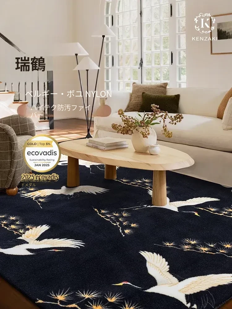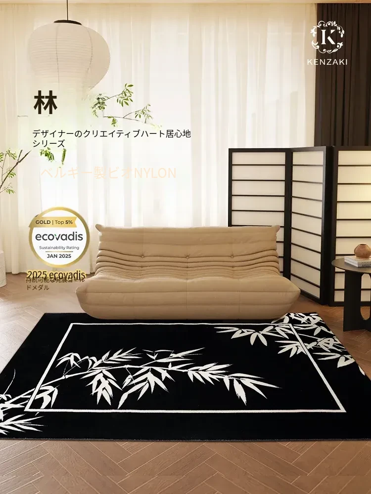 新中式デザインのブラックカーペット - リビング、寝室、子供部屋に最適!防音効果もあり、デスクや椅子の下にぴったりの軽やかで高級感あふれるフロアマット。おしゃれな空間を演出します!