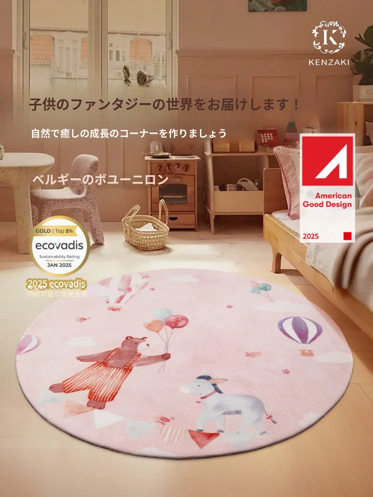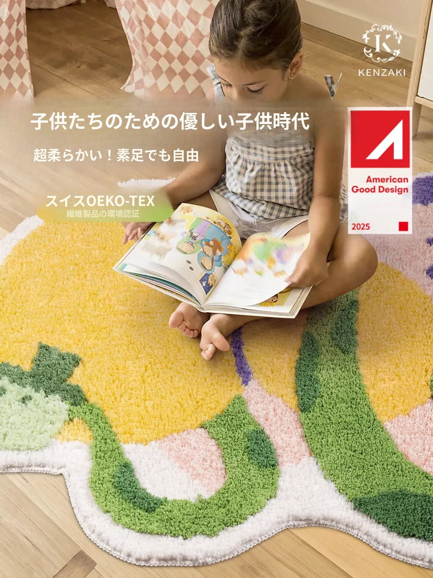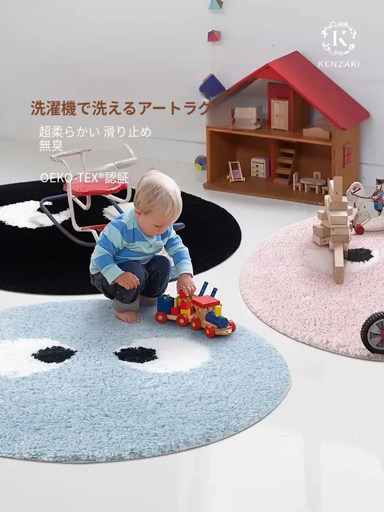 KENZAKI(健崎)洗える防音・滑り止めデザインラグマット - おしゃれで快適な子供部屋やリビングに最適!柔らかい素材で安全性も抜群、洗濯可能でお手入れ簡単。