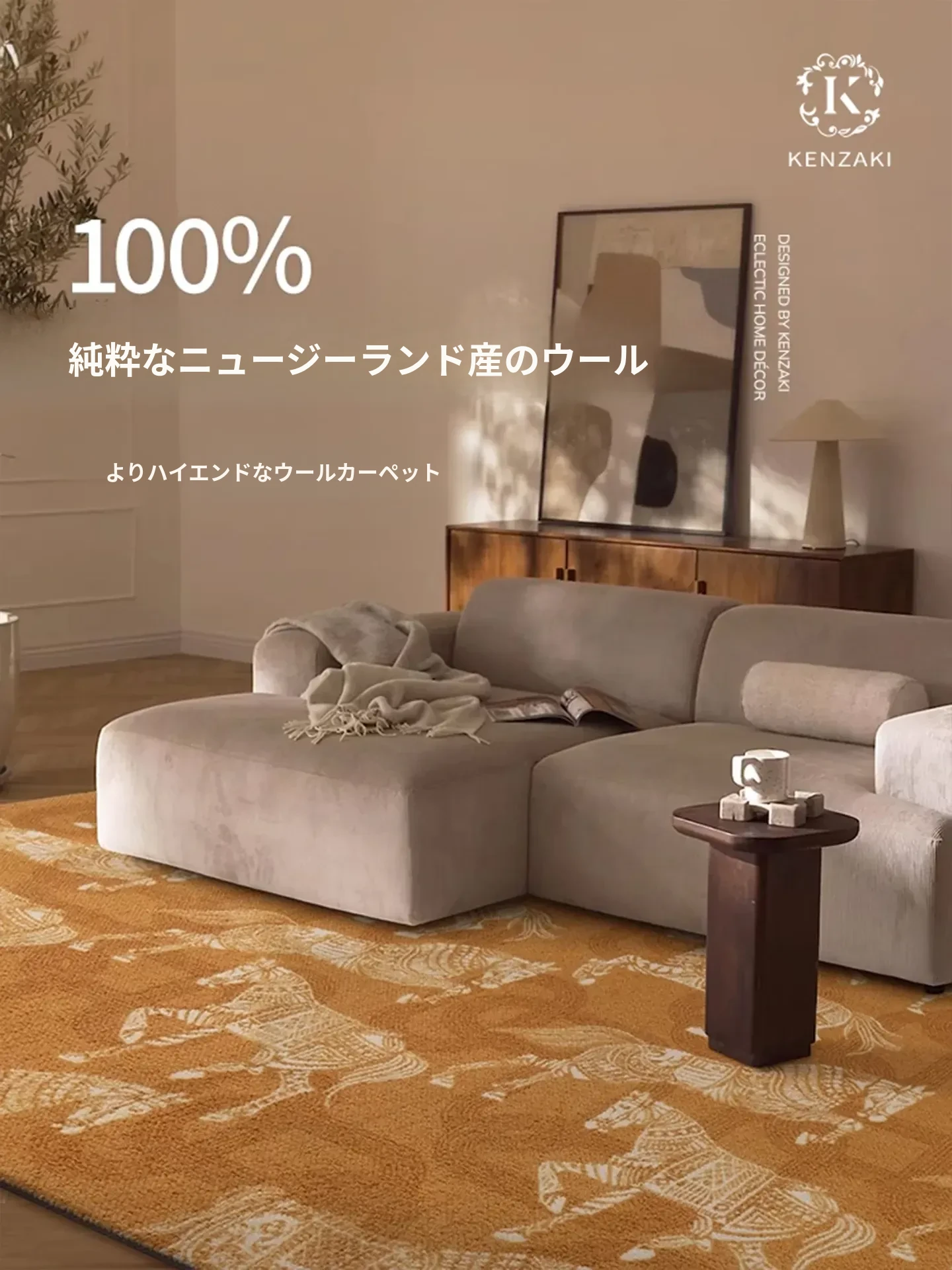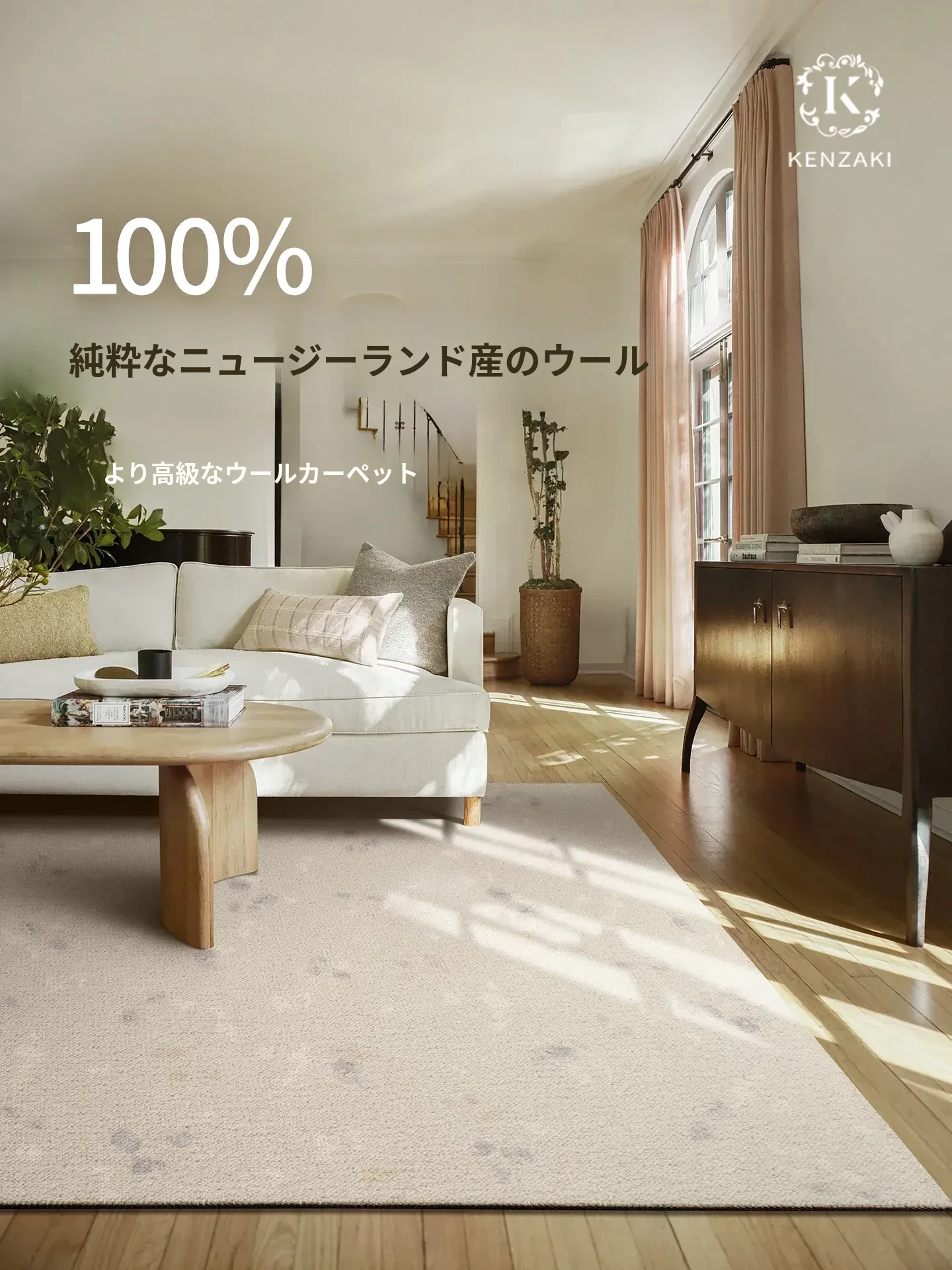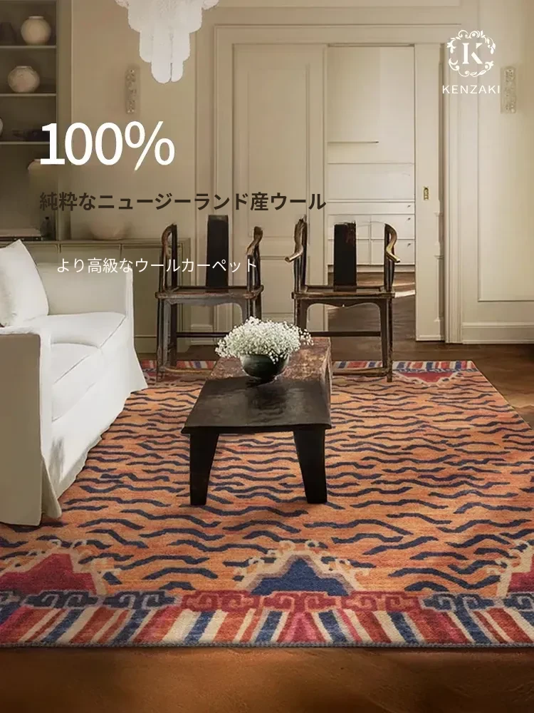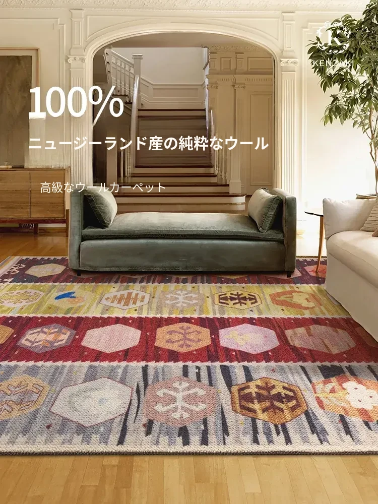KENZAKI健崎 新西兰ウール レトロ フランス風カーペット 寝室 テーブル用 高級ライトラグ リビングルームに最適で、上質な空間を演出します!