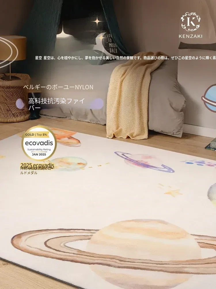 子供用カーペット ベッドサイドマット 男の子・女の子向け 学習椅子用フロアマット リビングルームにぴったりの高級感あふれる星空デザインのカーペットで、快適で楽しい空間を演出!