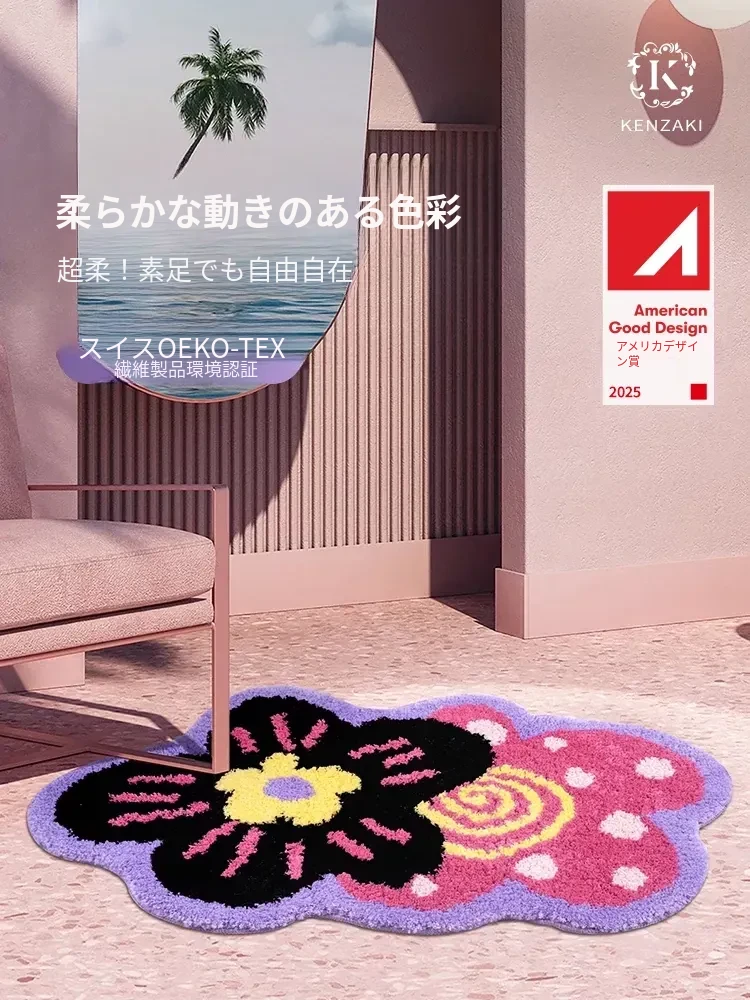 子供部屋にぴったり!女の子のためのベッドサイドラグ、洗濯機で洗える多バイタルデザイン。メイク台や化粧椅子にも最適な滑り止め付きマット。おしゃれで快適な空間を演出します!