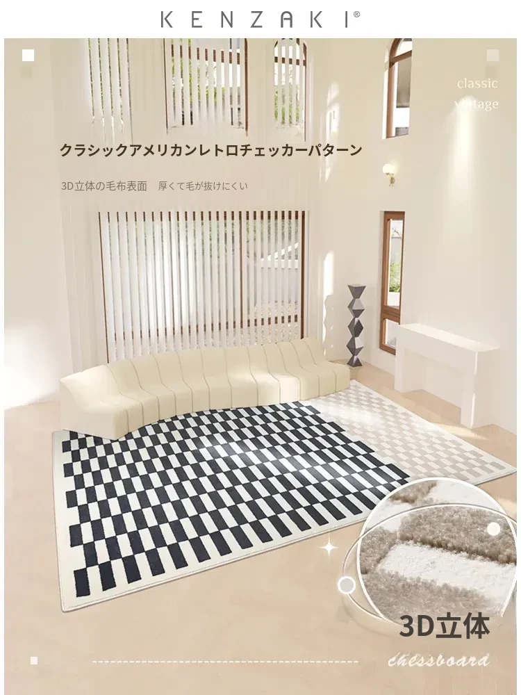 【カーペットクリアランス】リビングルームにぴったりの高級感あふれるフレンチチェックデザイン!厚手でレトロな雰囲気の寝室用マット。おしゃれなインテリアに最適!