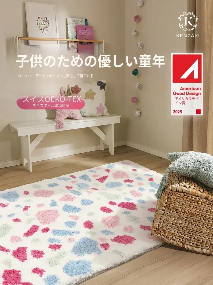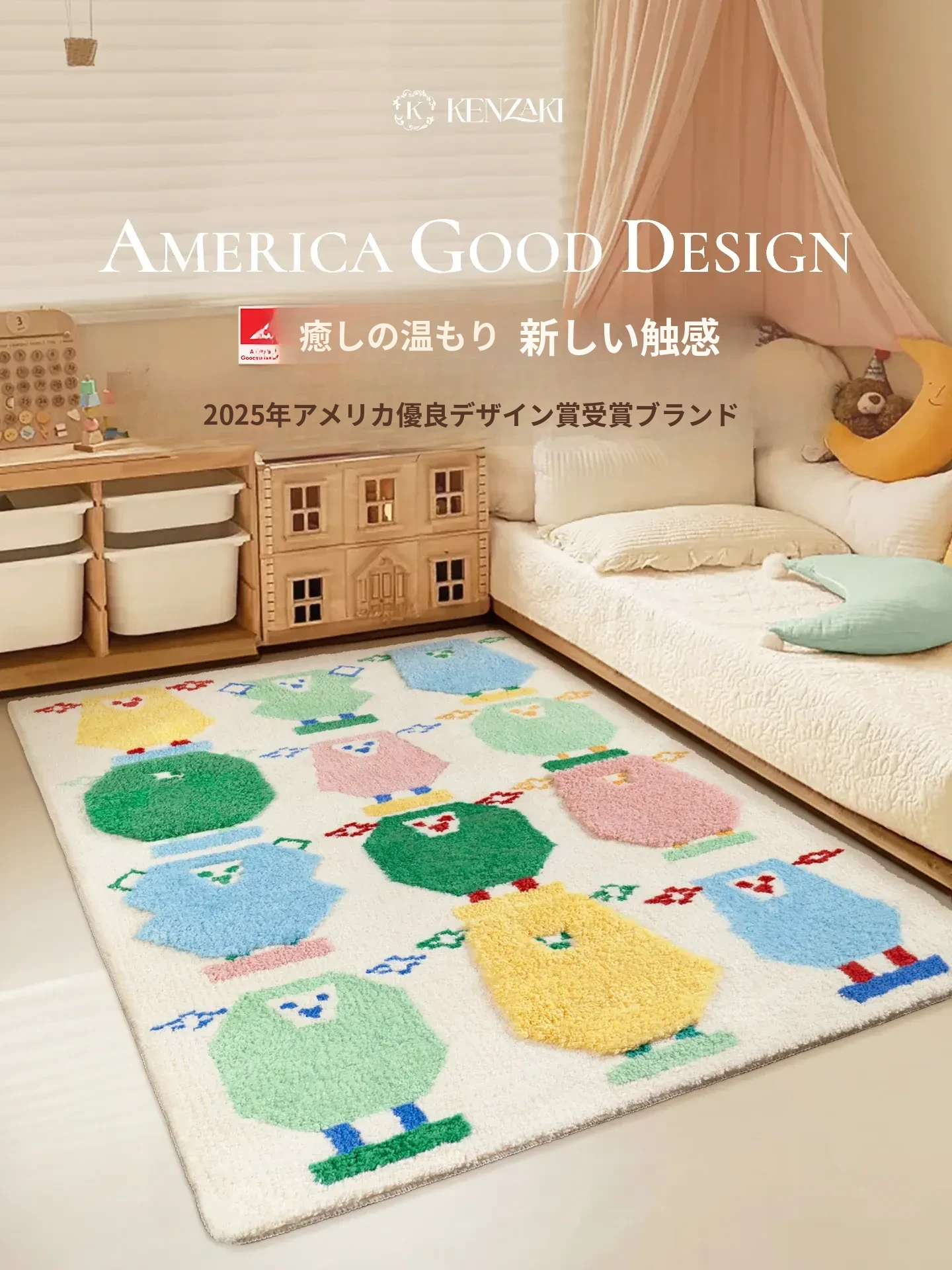 KENZAKI(健崎)洗える防音・滑り止めデザインラグマット - おしゃれで快適な子供部屋やリビングに最適!柔らかい素材で安全性も抜群、洗濯可能でお手入れ簡単。