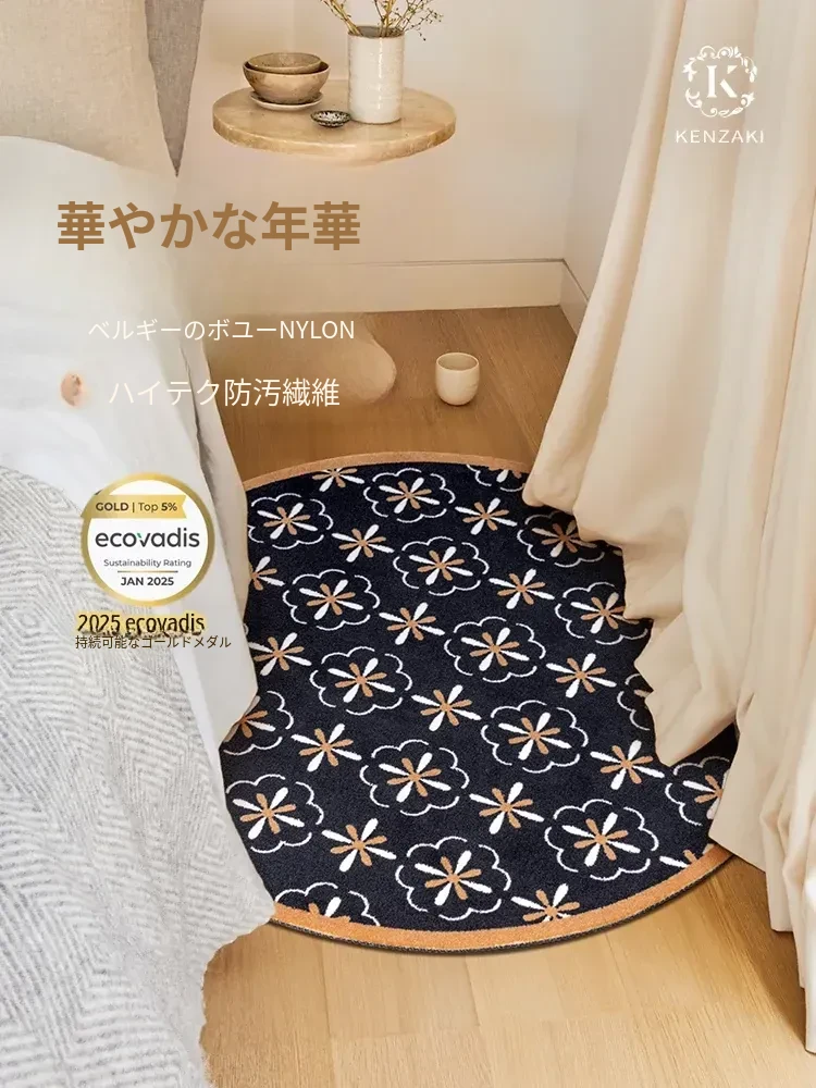 洗える!滑り止め付きの丸型ラグ - 寝室やリビングに最適!ソファやベッドの前にぴったりの読書スペースに。子供用にも安心なデザインで、快適な空間を演出します。
