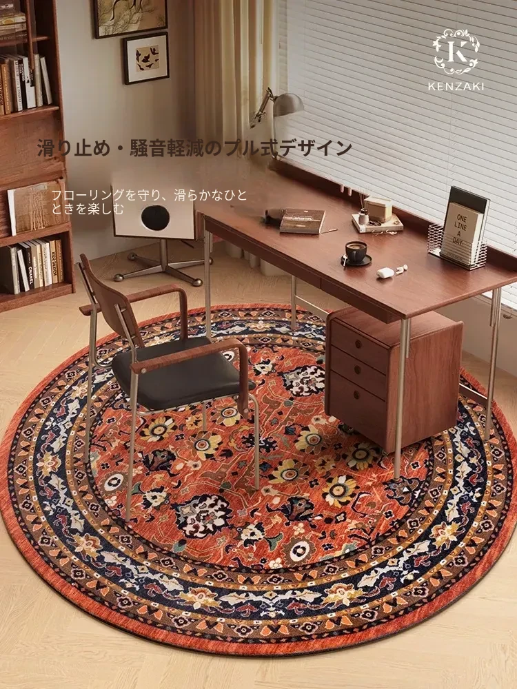 ラウンドカーペット 高級フレンチスタイル リビングルーム・ベッドサイド・子供部屋に最適なレトロな赤色のビンテージマットで、空間をエレガントに演出します。