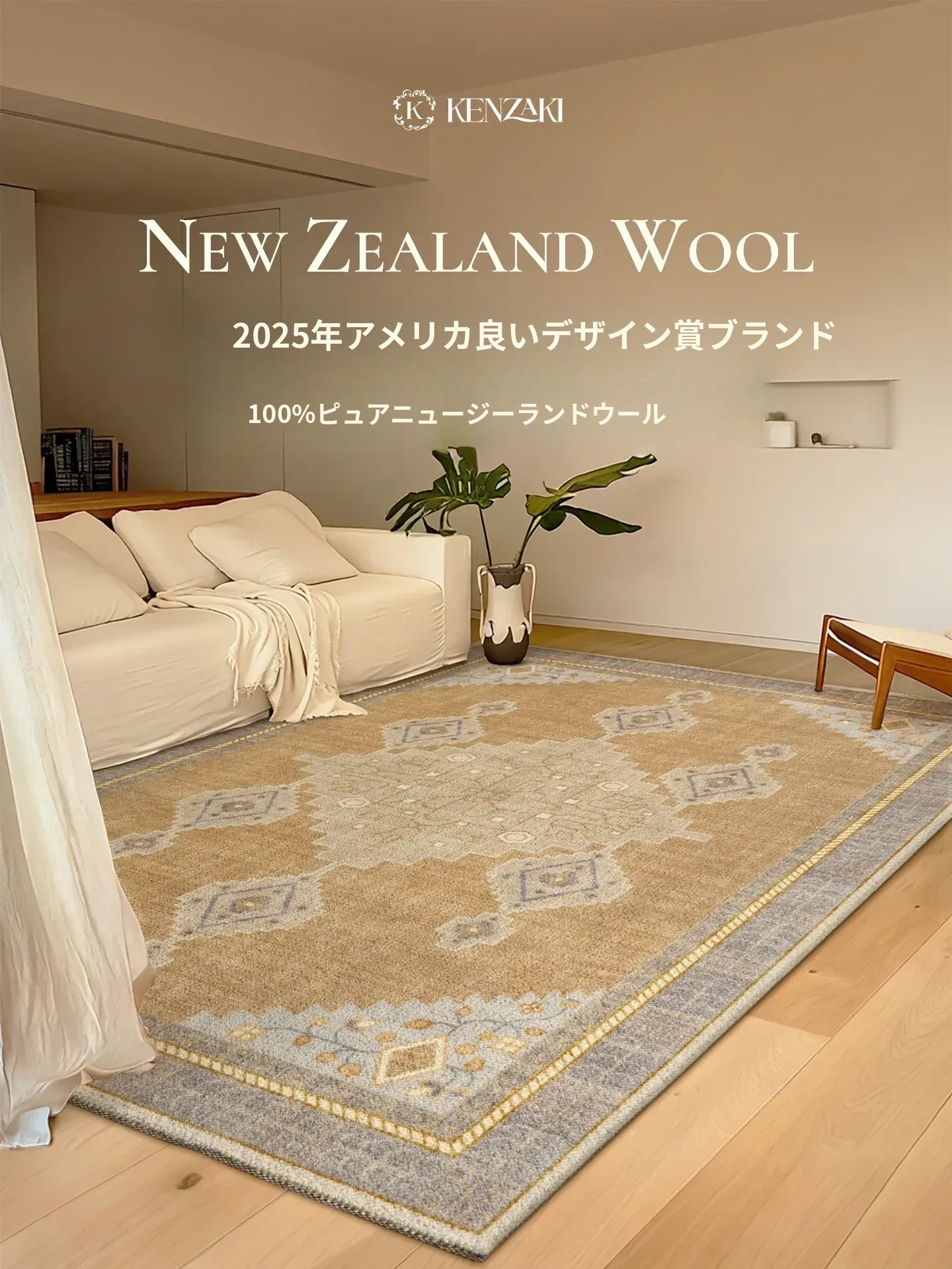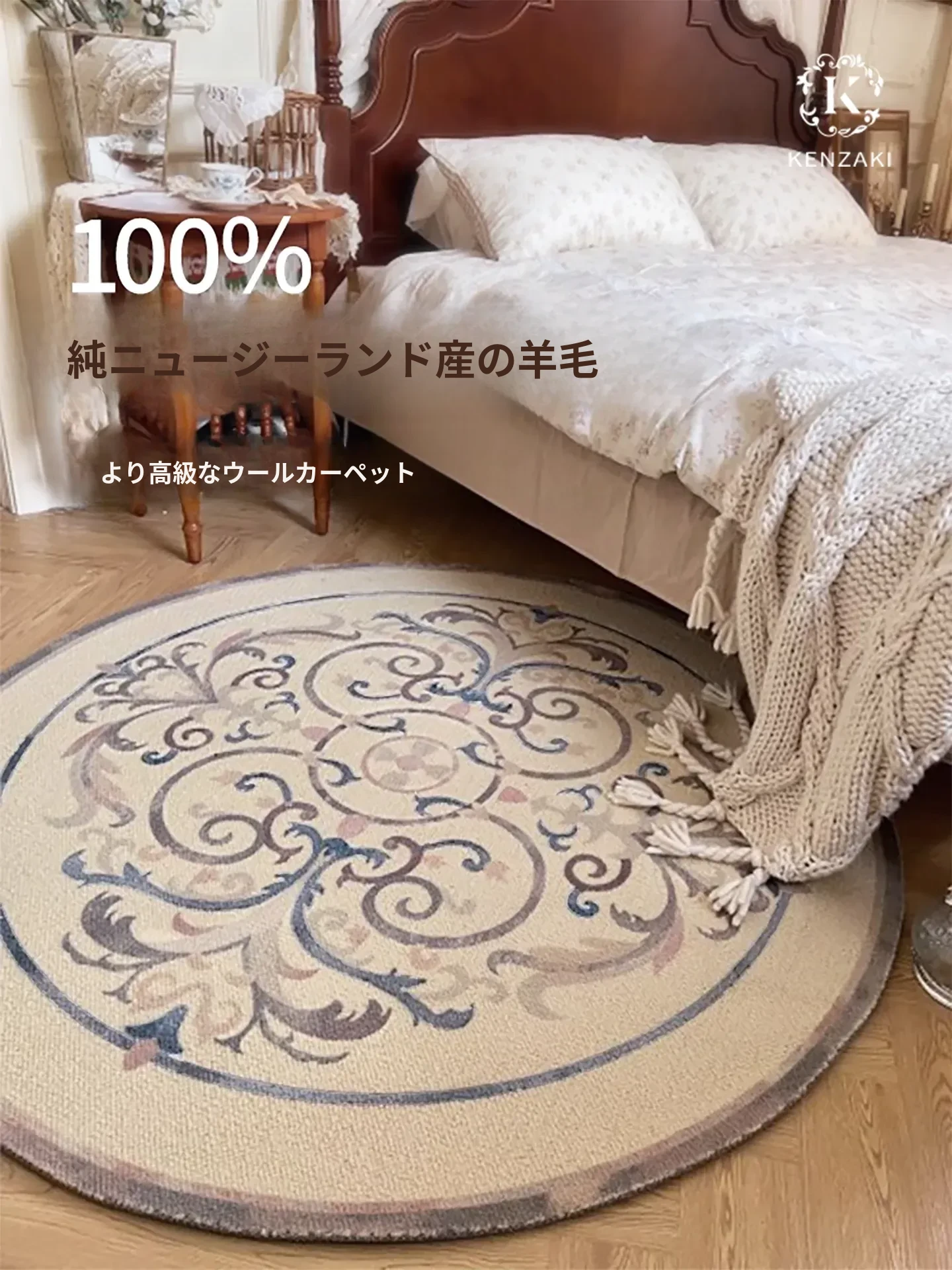 100%ニュージーランド産ウールラグ|リビング・寝室・ベッドサイドに最適!新中式とフレンチヴィンテージの絶妙な融合、優雅さと温もりをお届けします。