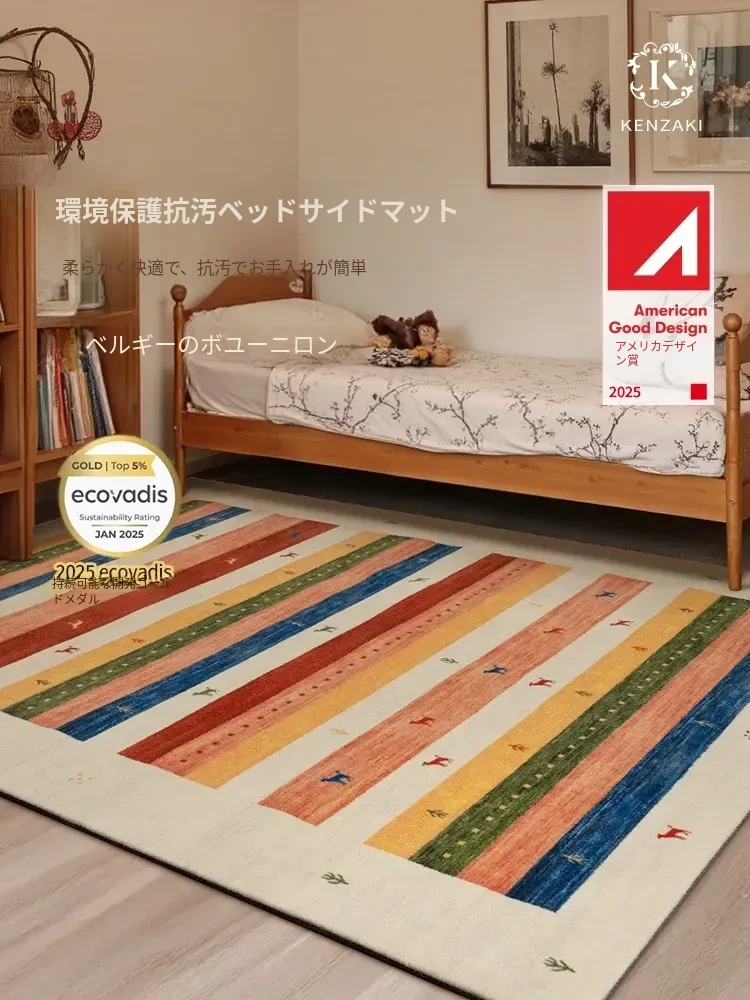 子供部屋のカーペット|ベッドサイドマット|男の子・女の子向け|おしゃれなインスタ風デザイン|リビングにもぴったり|高級感あふれるレインボー&ドーパミンカラーで、夢のような空間を演出!