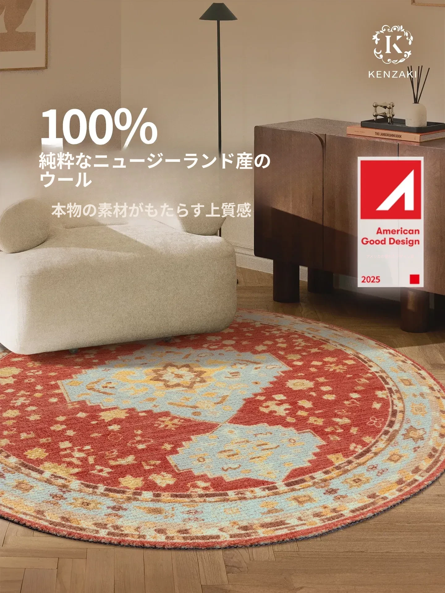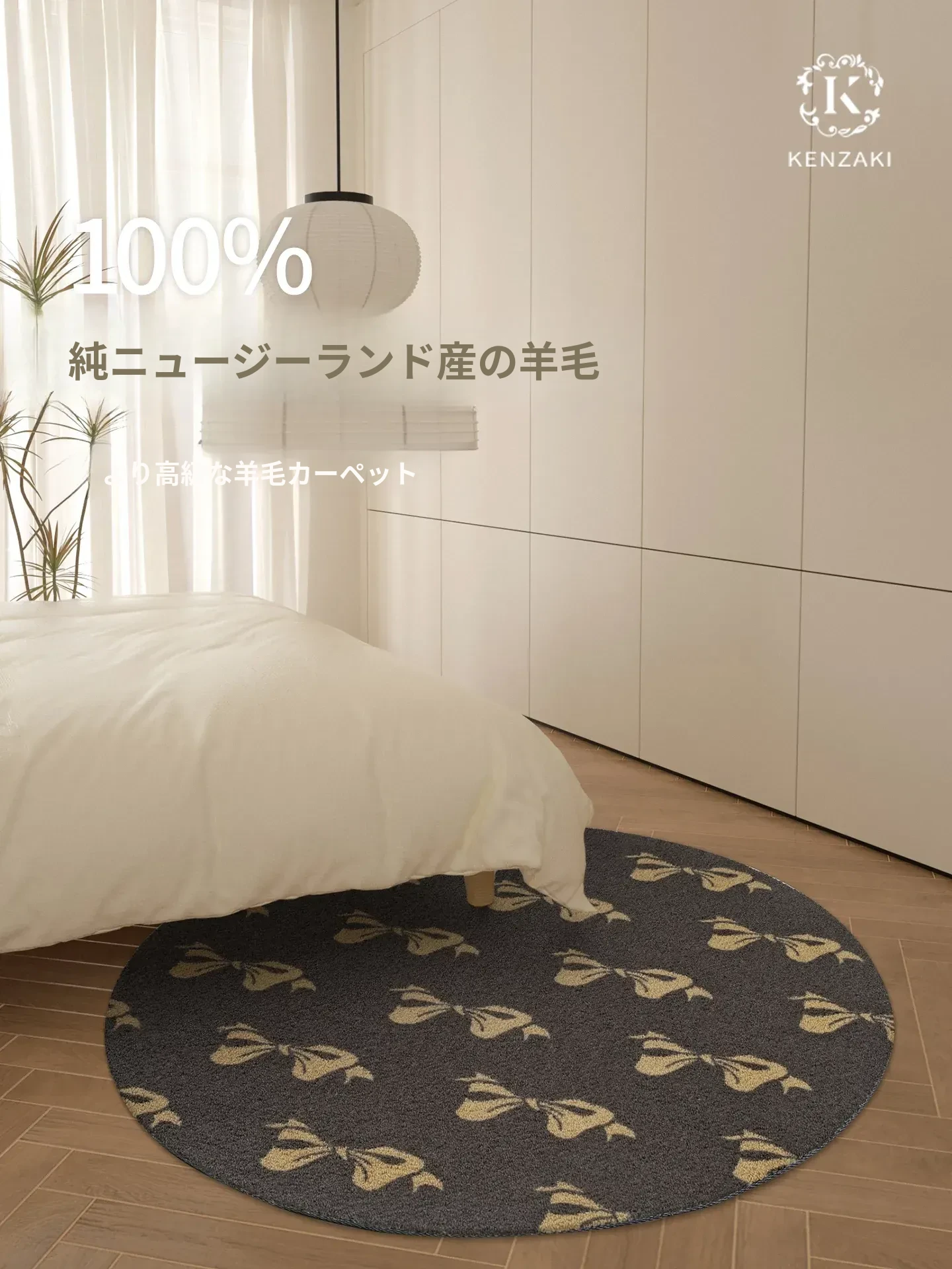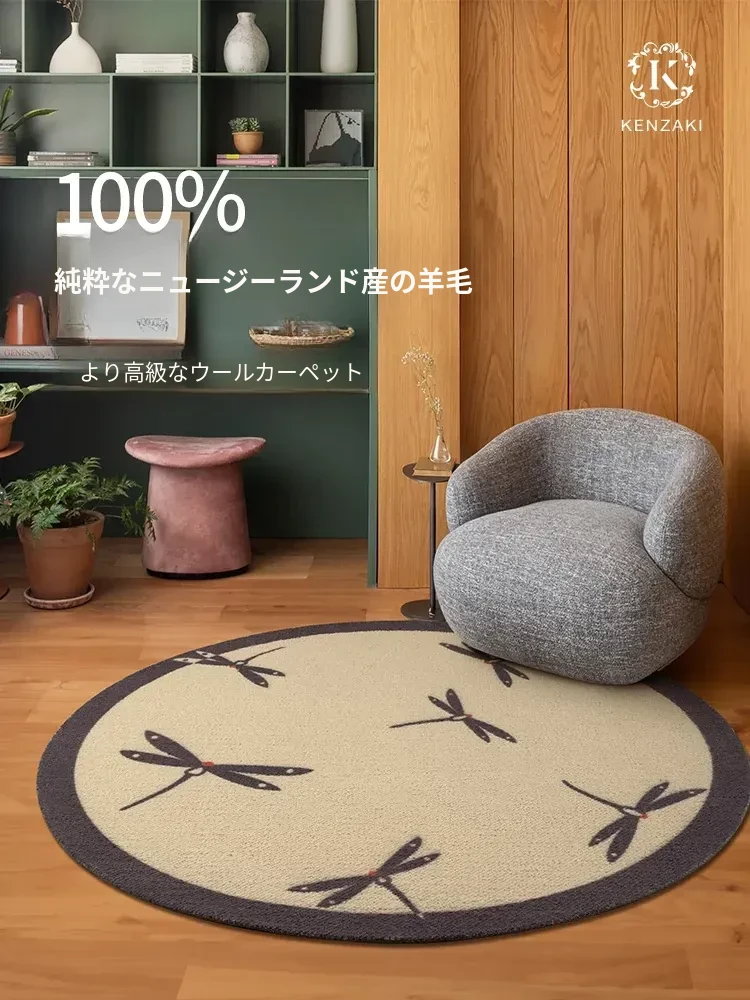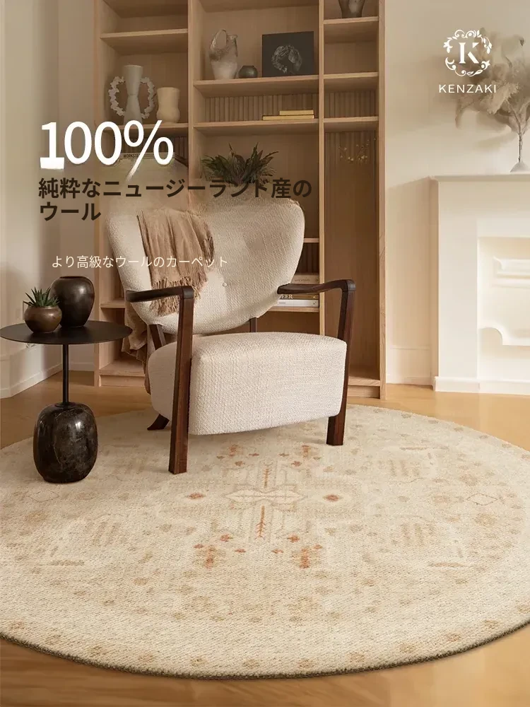 KENZAKI 新西兰ウール ヴィンテージ フランス風ラグマット - おしゃれな円形デザイン、寝室やリビングにぴったりの暖かさと快適さを提供します。