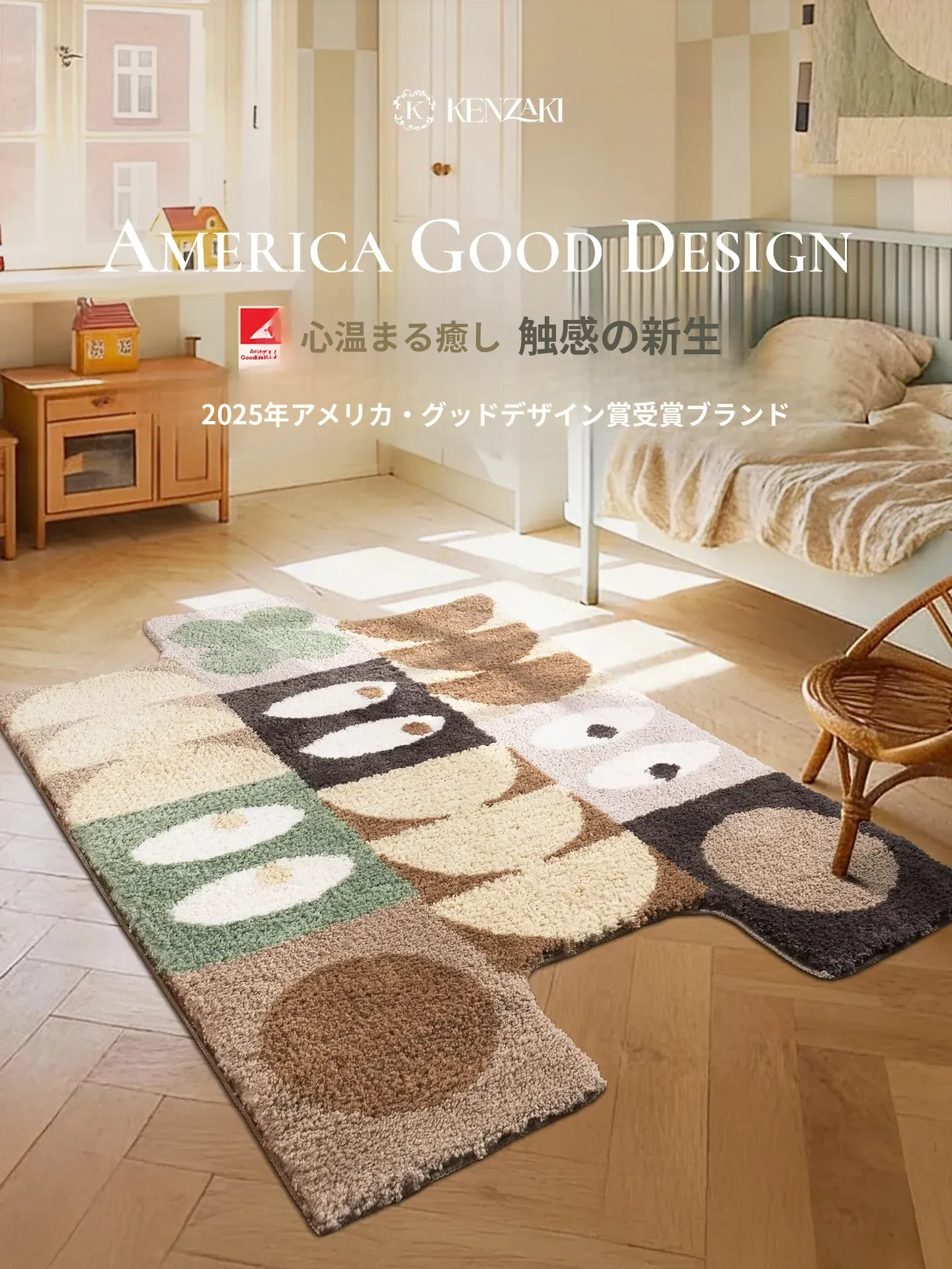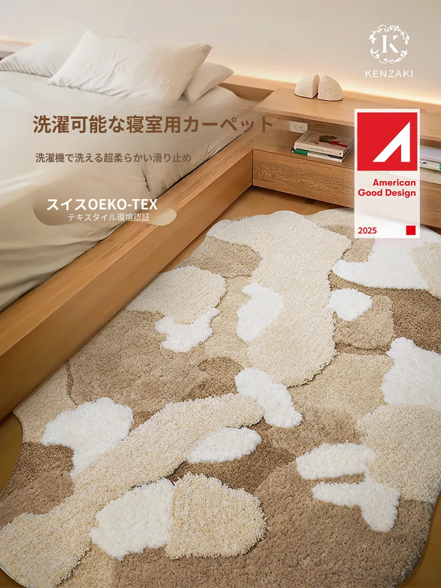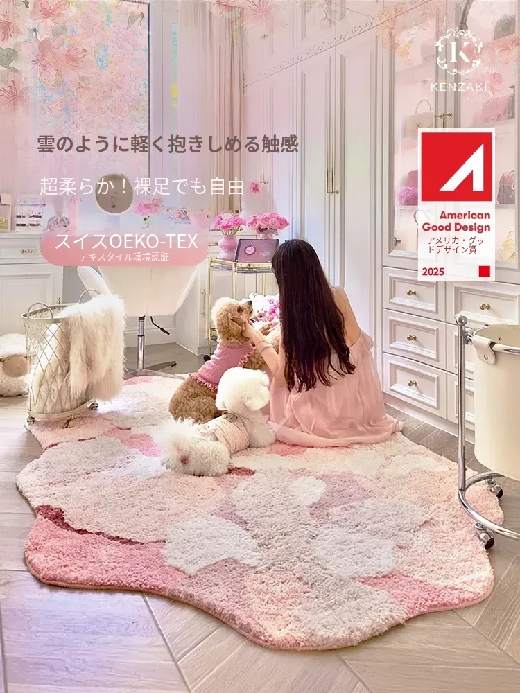 カーペットガールのベッドサイドマット!不規則な形状で、多バイタルな部屋にぴったり。子供用ラグとしても、リビングのアクセントにも最適。滑り止め付きで安全、洗濯機で丸洗い可能!おしゃれで実用的なアイテムです。