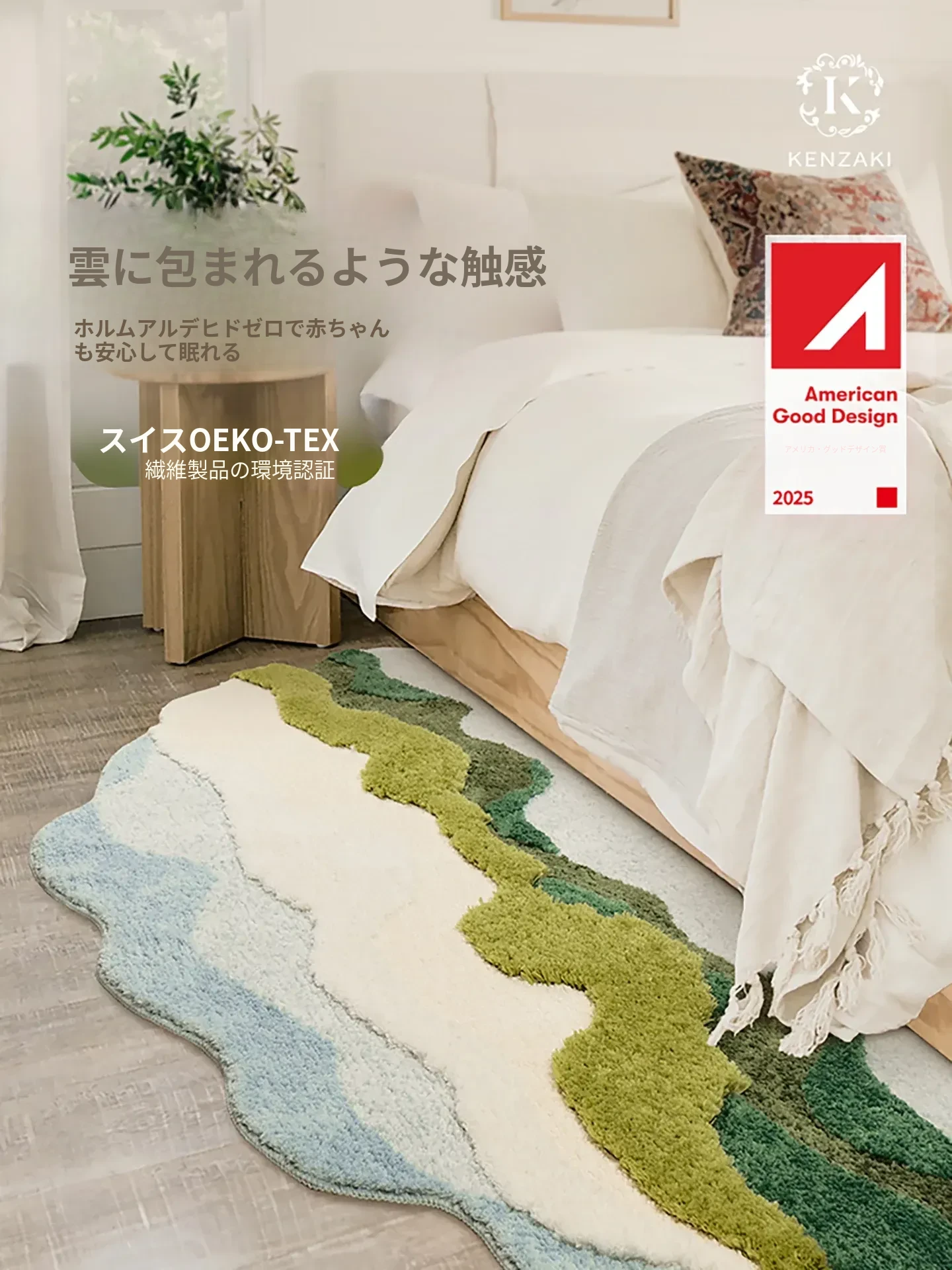 高級感溢れる防滑モス地毯 - 寝室や子供部屋、リビングに最適!安心の転倒防止機能付きで、洗濯機で簡単お手入れ。あなたの空間をスタイリッシュに演出します。