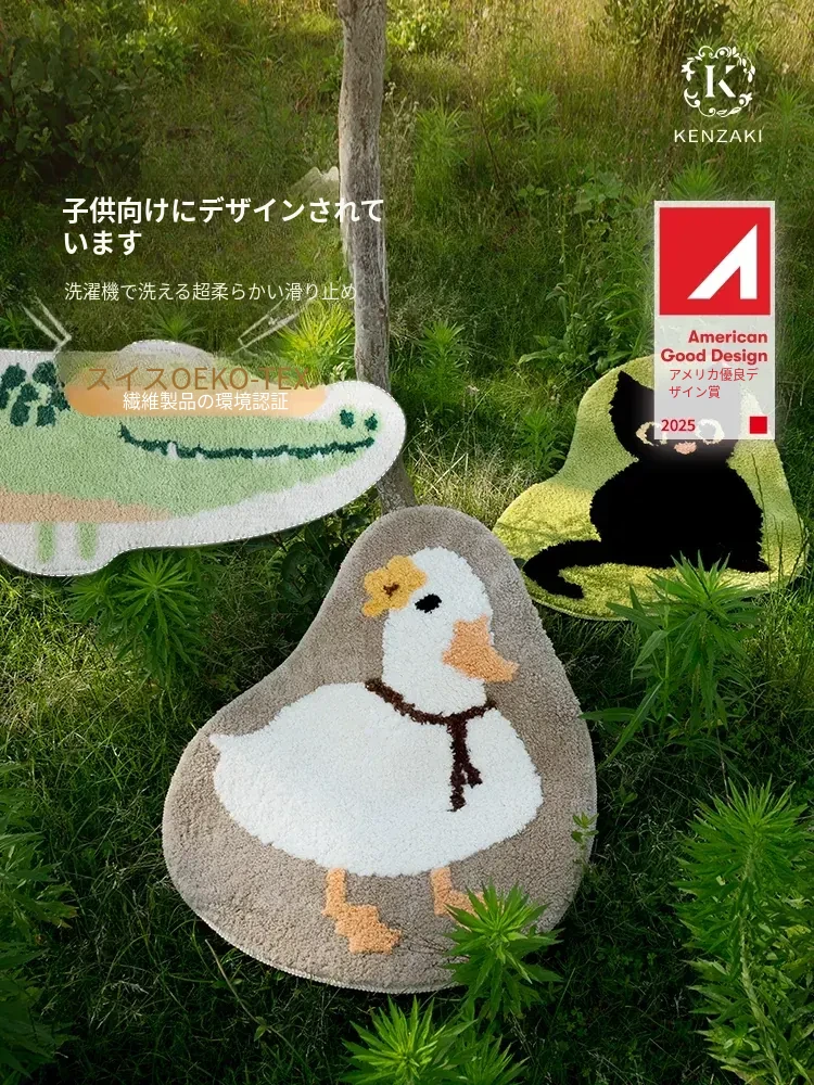 子供用ルームマット おしゃれなインスタ風の異形デザイン ベッドサイドカーペット 滑り止め付き ふわふわの洗えるクッション かわいいコールダックデザイン