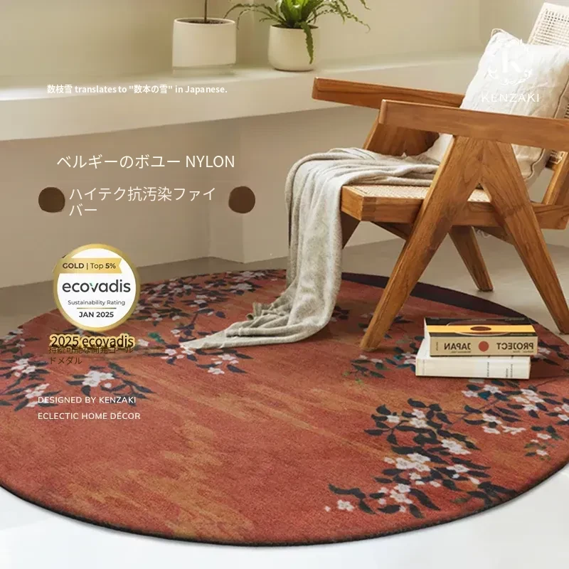 100%ニュージーランドウール使用!リッチなフレンチスタイルのラグ、アンティーク風レトロレッドの円形カーペット。リビングやベッドサイドに最適な軽やかなラグで、快適さと高級感をお届けします。