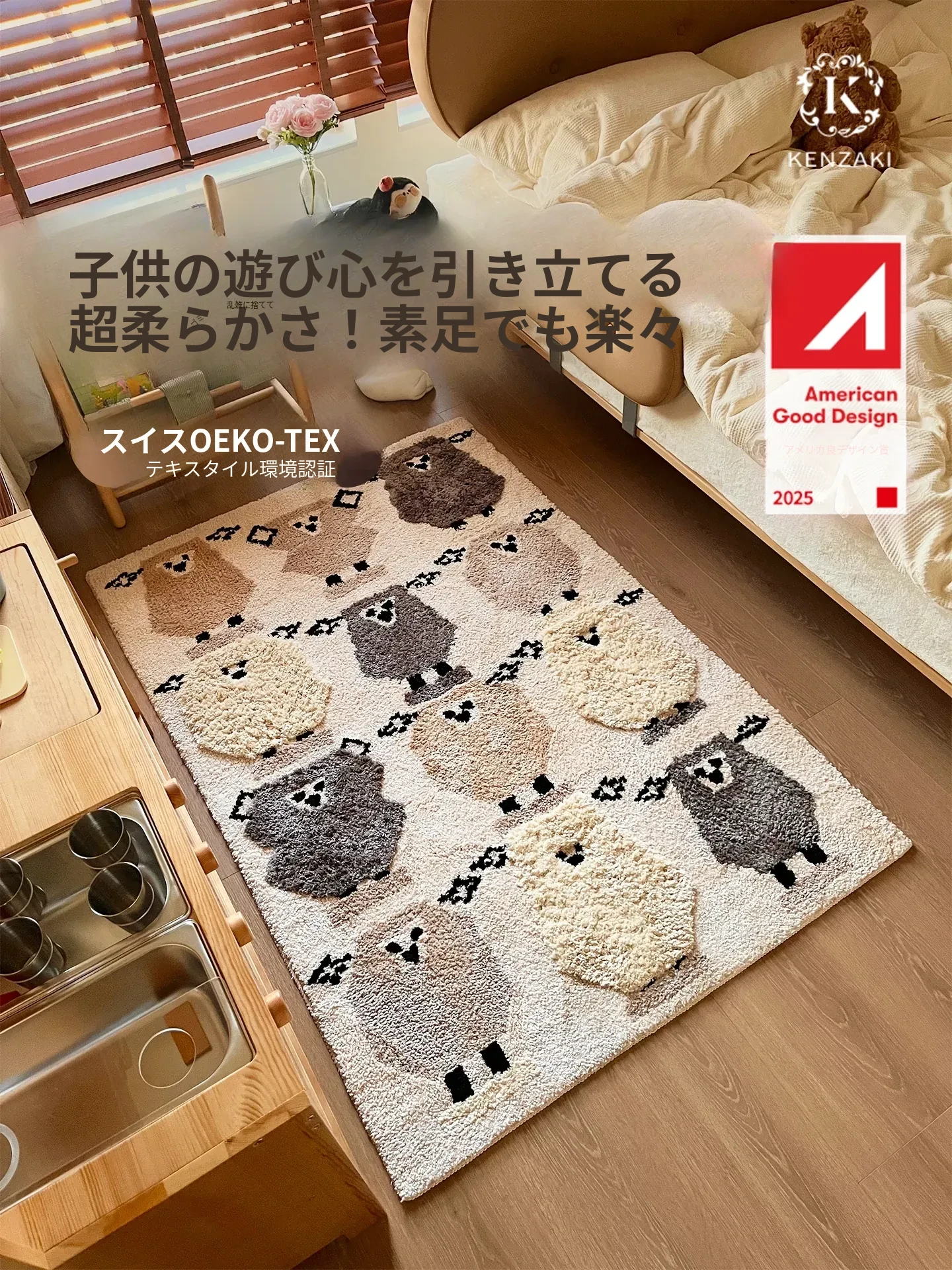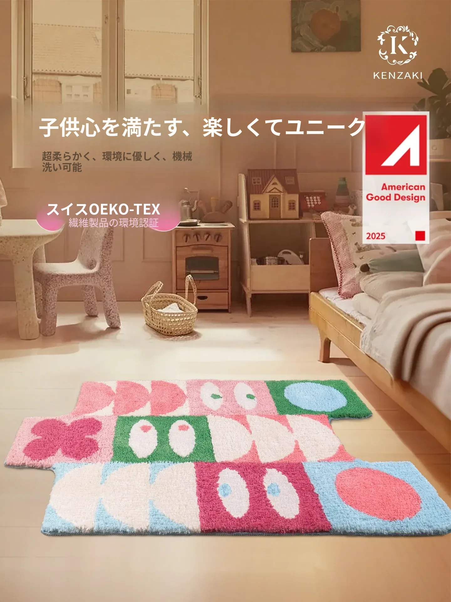 子供用カーペット ベッドサイドマット 読書エリアにぴったりのドーパミンマット!滑り止め加工で安全、洗濯機で簡単お手入れ。心温まるお部屋作りをサポートします!