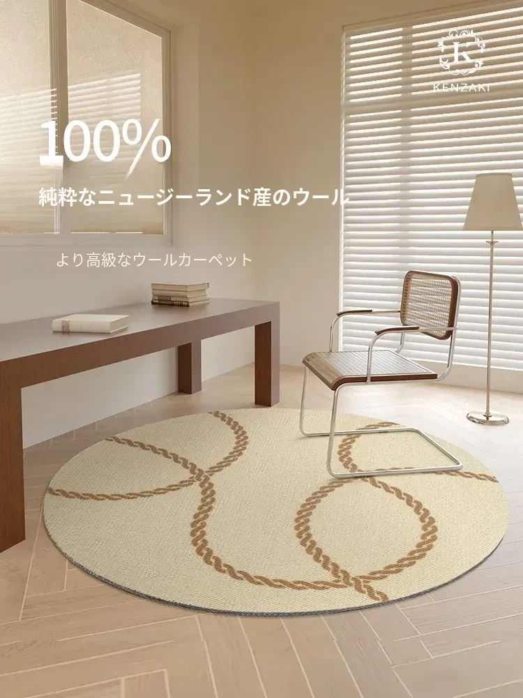 100%ニュージーランド産ウールラグ|リビング・寝室・ベッドサイドに最適!フレンチビンテージの軽やかなラグで、テーブルの下にぴったりな円形デザイン。優雅さと温もりを同時に楽しめる一枚です!
