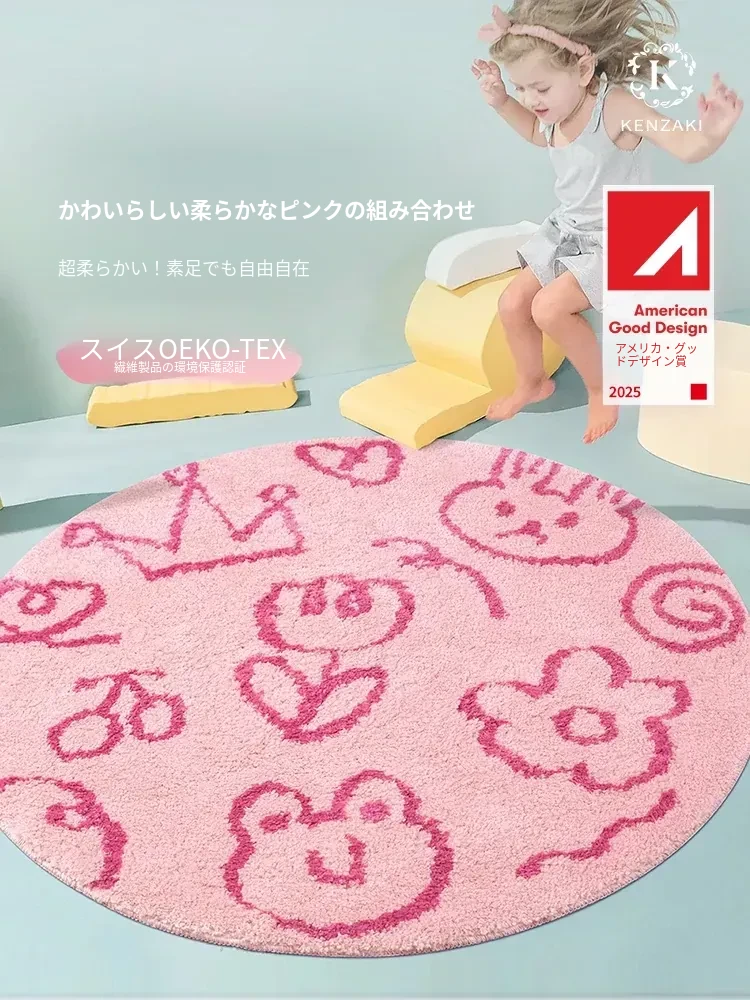 KENZAKI 超柔らかい環境に優しい子供部屋用ラグ - 女の子の寝室にぴったりな円形ラグ!フランス風の可愛いデザインで、赤ちゃんの成長を祝う「抓周」マットとしても最適!