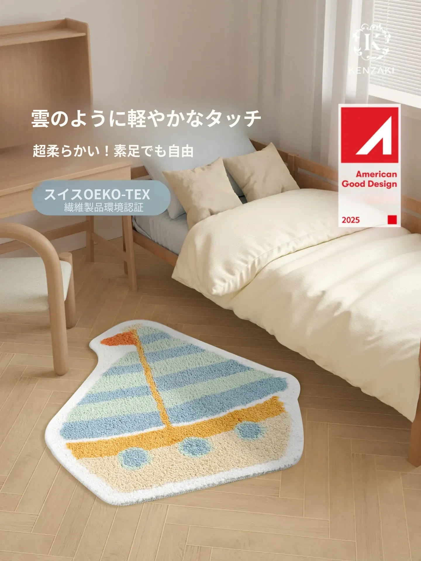可愛らしいINS風の子供用カーペット、ベッドサイドマットとしても最適!読書や学習用椅子の下にぴったりな帆船デザインのユニークな形状。洗濯機で洗えるので、いつも清潔に保てます!