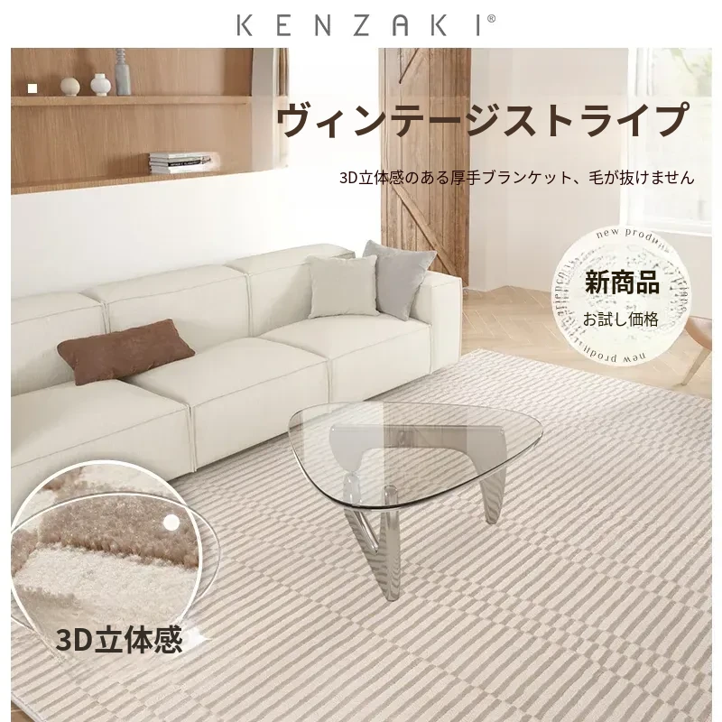 【クリアランスセール】リビングルームにぴったり!高級感漂うフレンチスタイルのラグ。ヴィンテージ立体ストライプデザインで、シンプルながら洗練された雰囲気を演出。寝室にも最適!