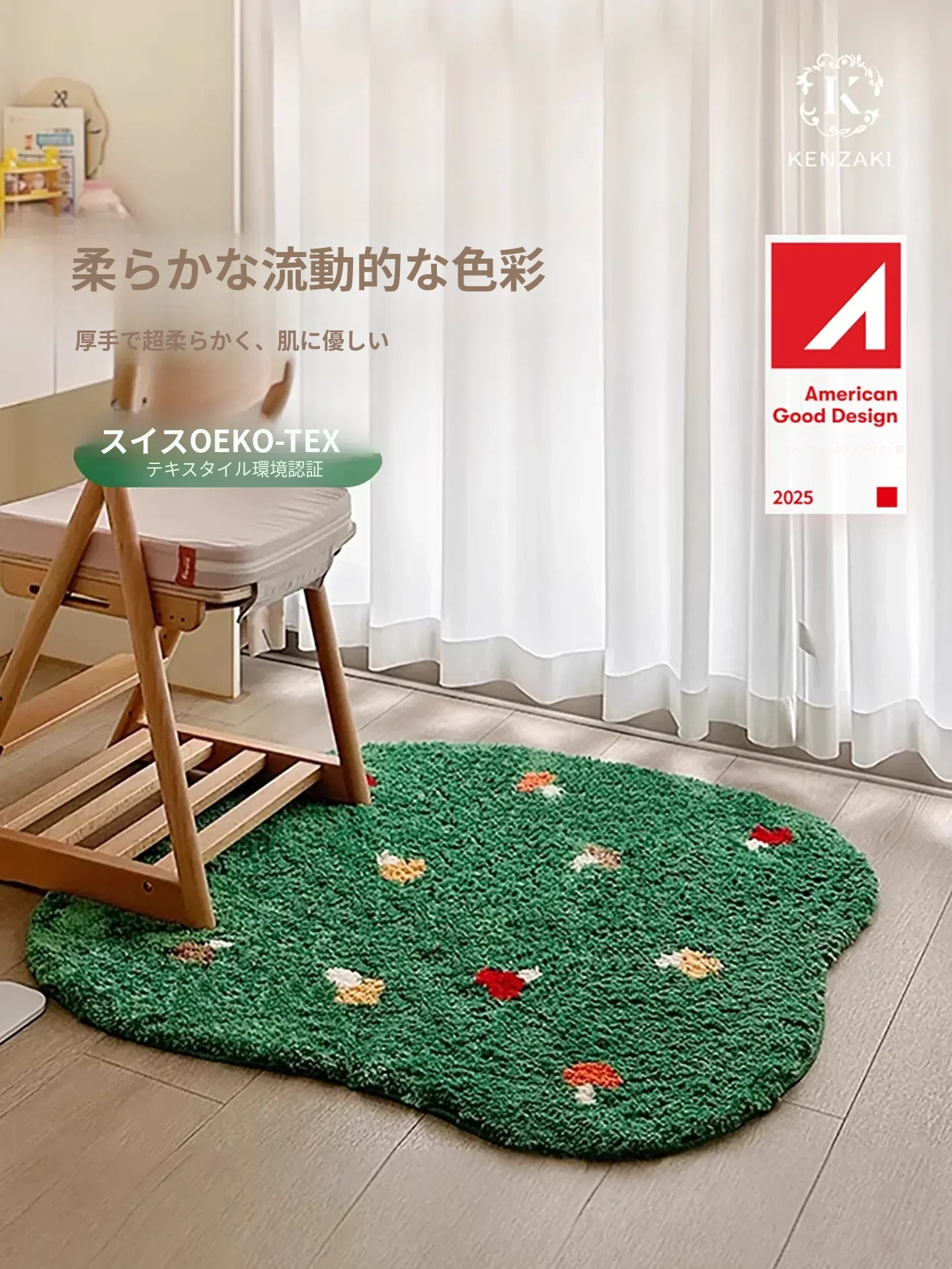 子供用カーペット インテリア風 ベッドサイドマット 男の子・女の子向け 読書エリア用グリーン異形デザイン 滑り止め付きで洗濯機で洗える!快適な空間を演出します。