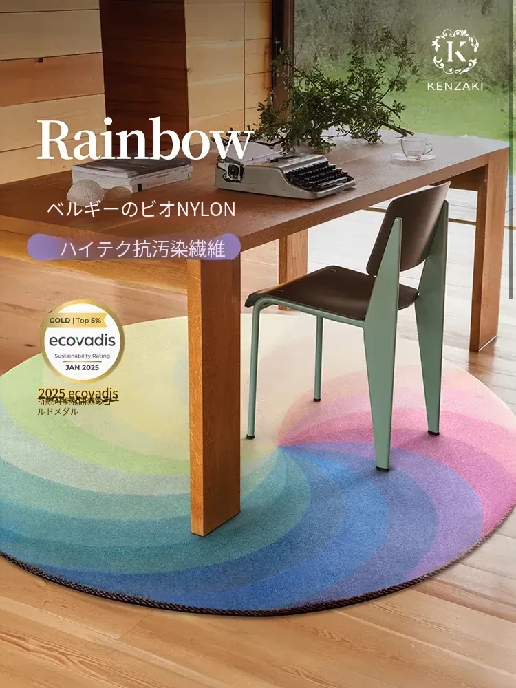 ラウンドカーペット|高級フレンチスタイル|リビングや子供部屋にぴったり|男の子・女の子のためのドパミンレインボーデザイン|おしゃれで心地よい空間を演出する子供用マット