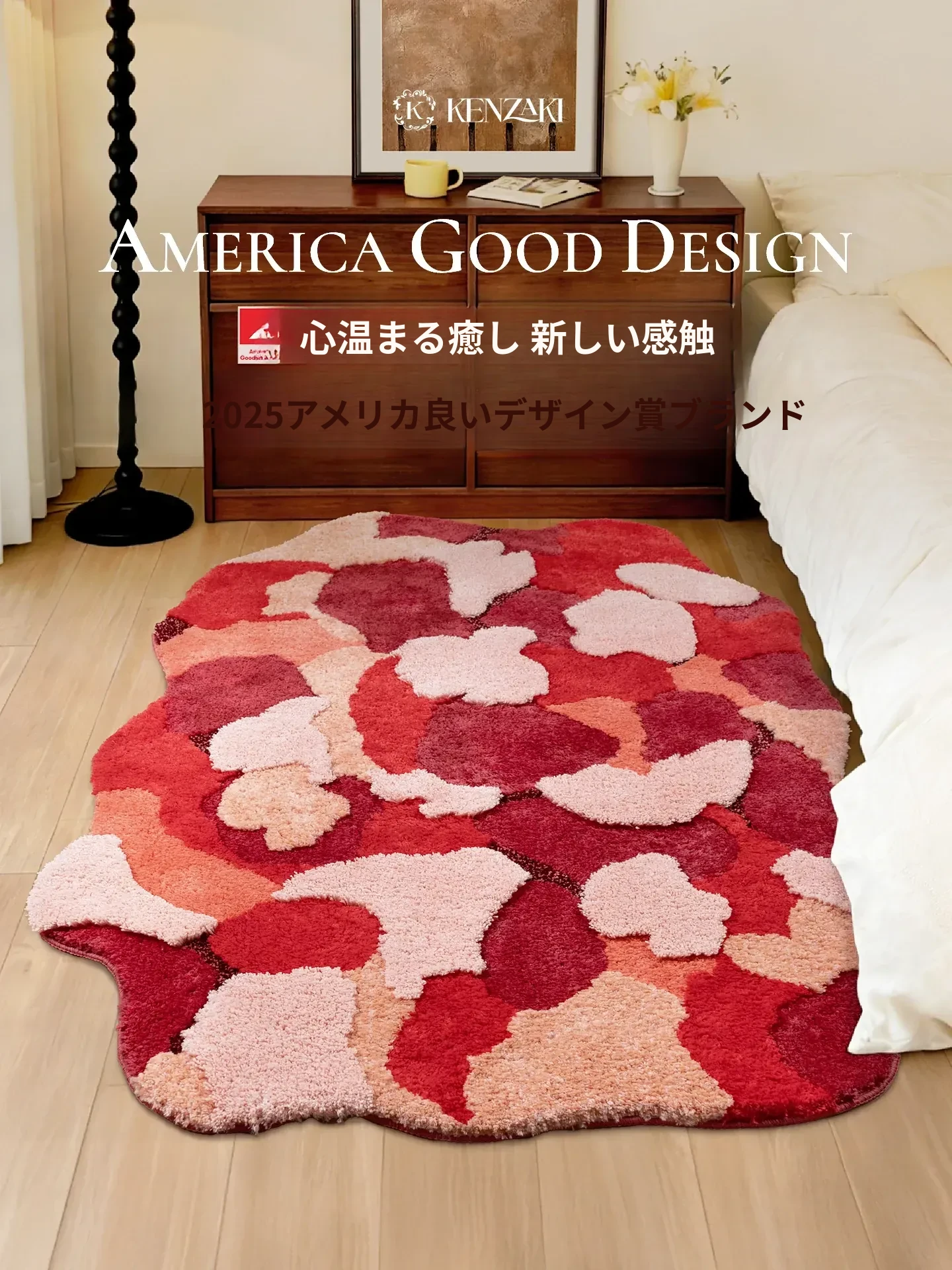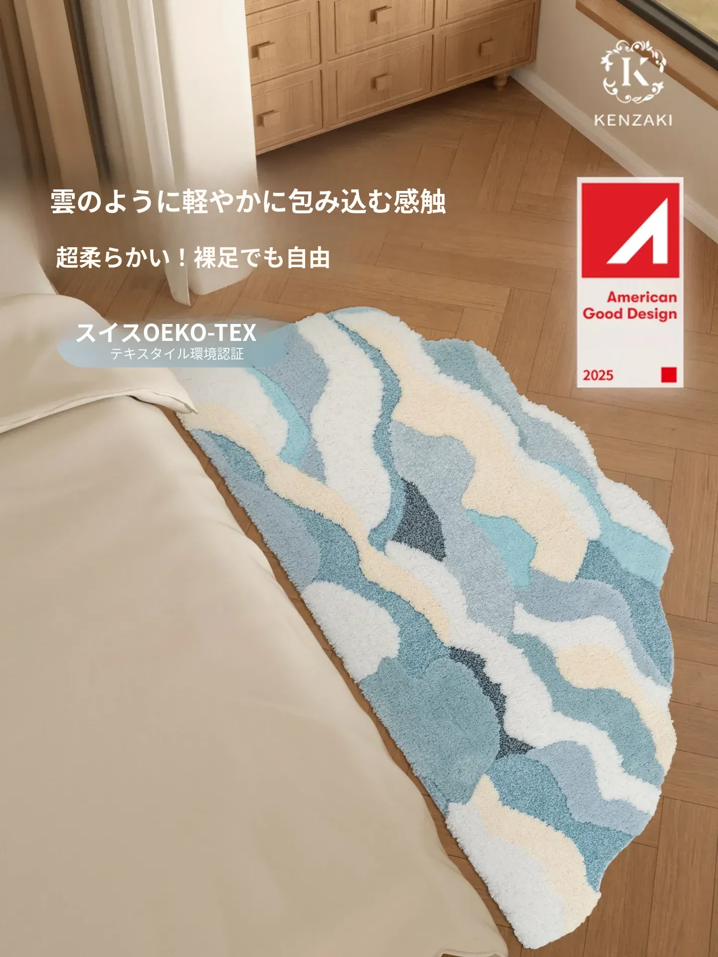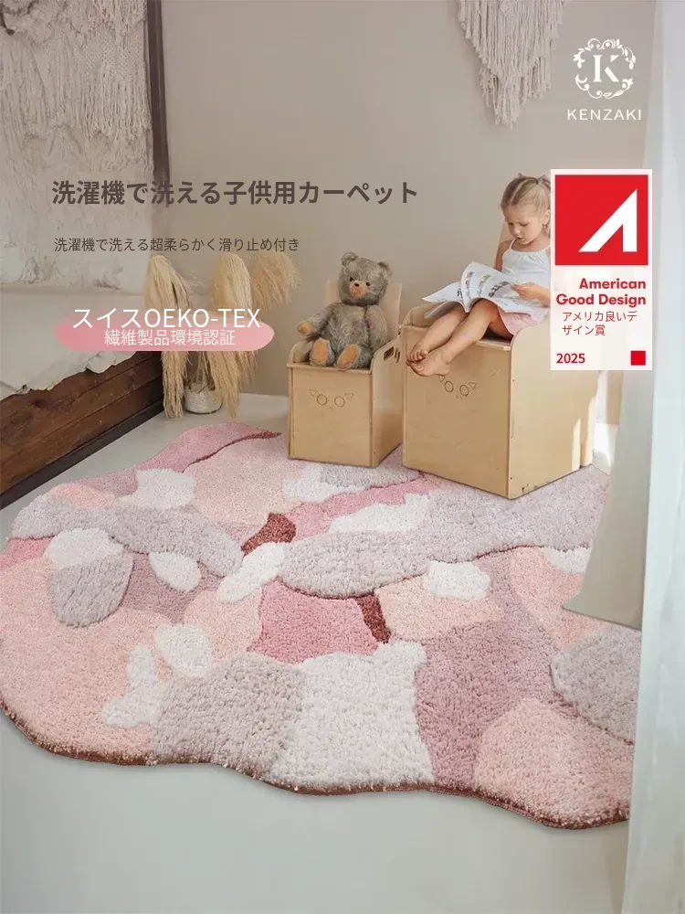 カーペットガールズベッドサイドマット|インスタ映えするクリーム風デザイン|子供部屋やリビングにぴったりの不規則な形状|洗濯機で洗える多バイタルマット!