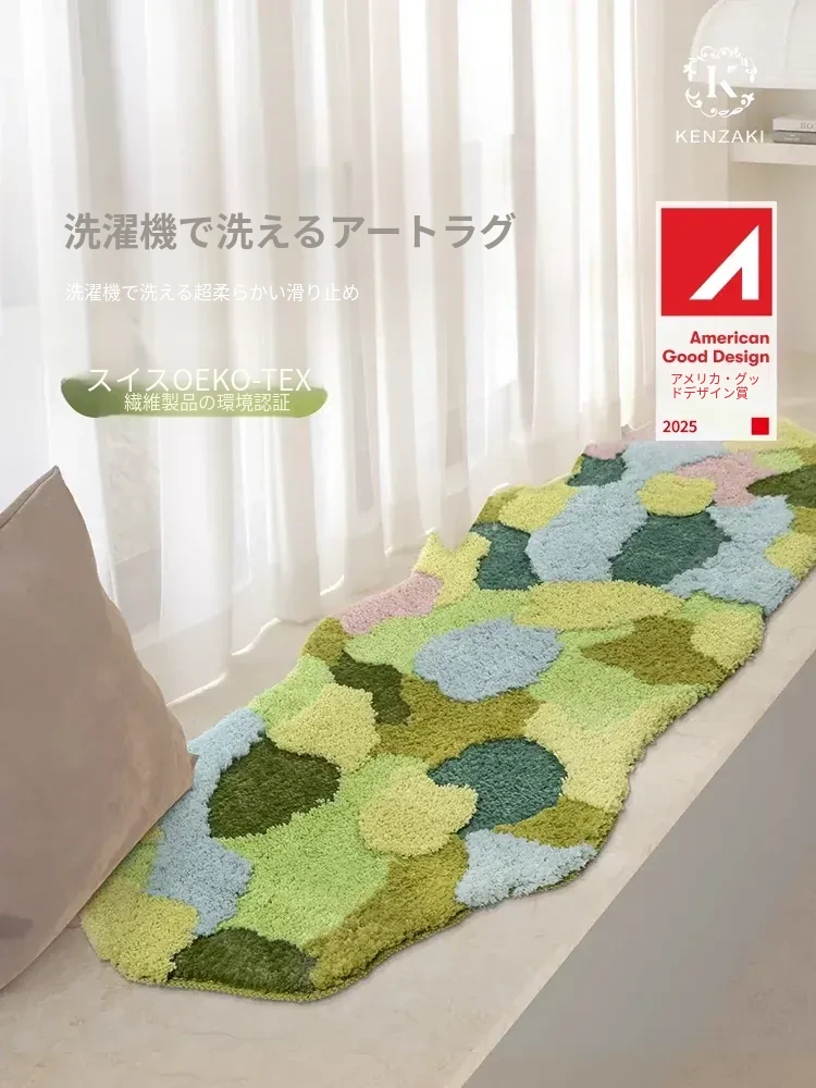ピンクモスのカーペット!女の子のための寝室にぴったりの窓辺マット。軽やかなインテリアで、洗濯機で洗える防滑仕様。おしゃれで快適な空間を演出し、お子様の遊び場にも最適です!