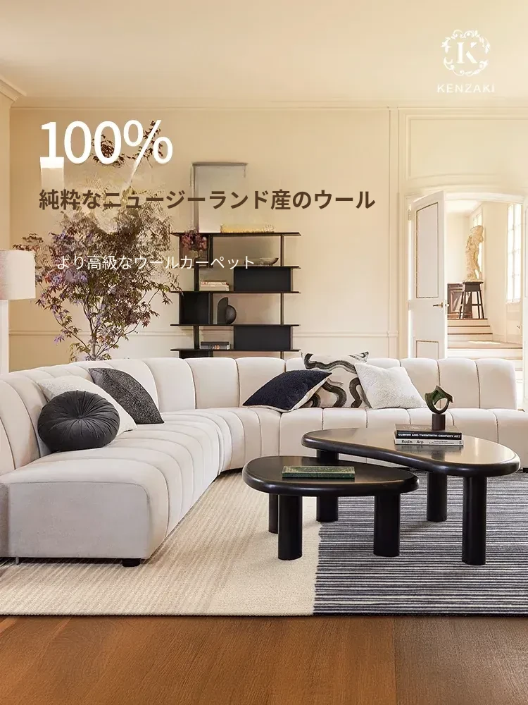 KENZAKI健崎 インポート インド製 手作り 無地 侘び寂びスタイル 寝室用 ソファ リビング 高級ウールラグ