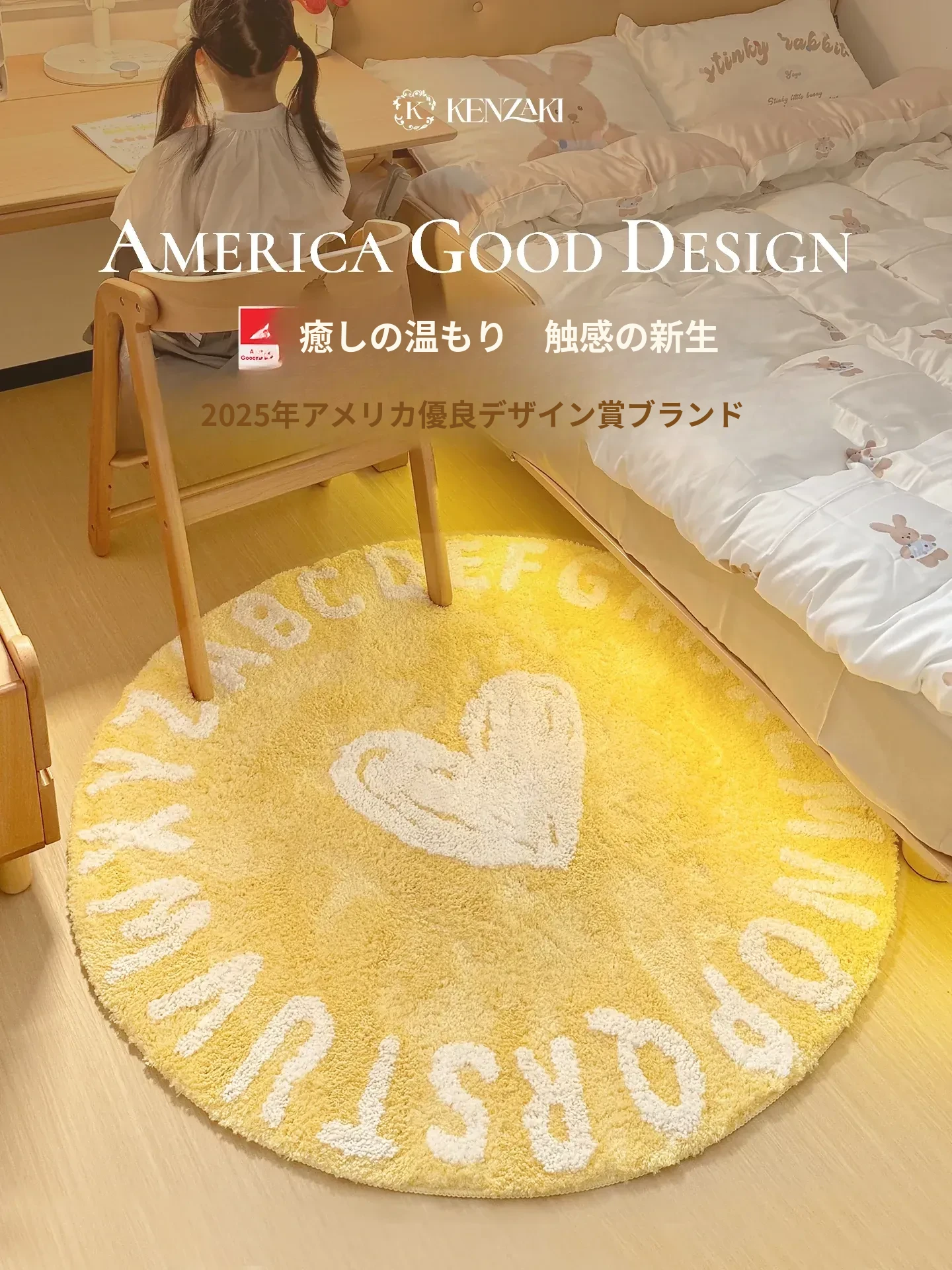 子供用インテリアラグ!おしゃれなインスタ風デザイン、男の子にぴったりの多バイナンスダイナミックな丸型ラグ。心温まるイエローハートで、お部屋を可愛く彩ります。洗濯機で洗える防滑仕様!