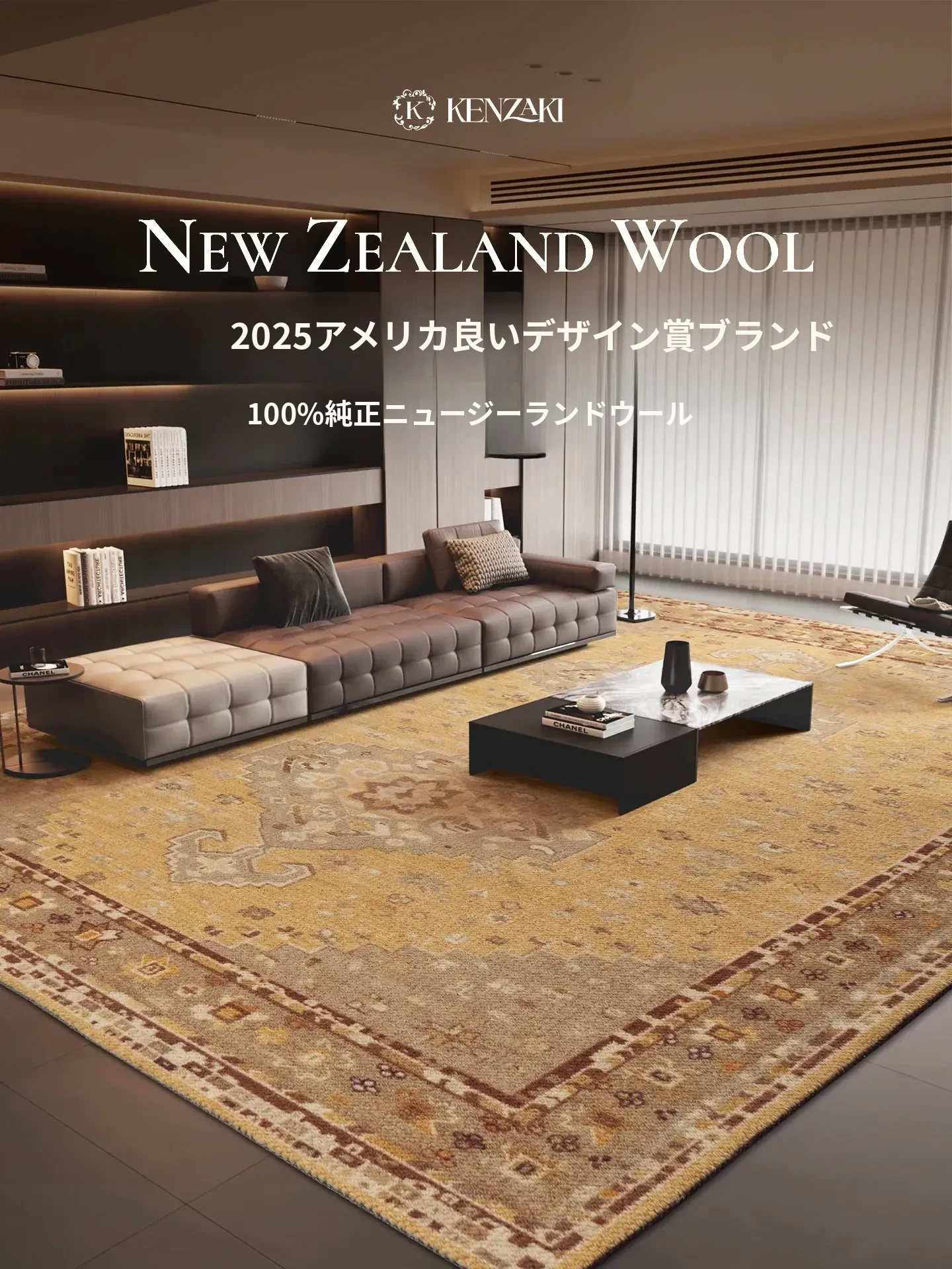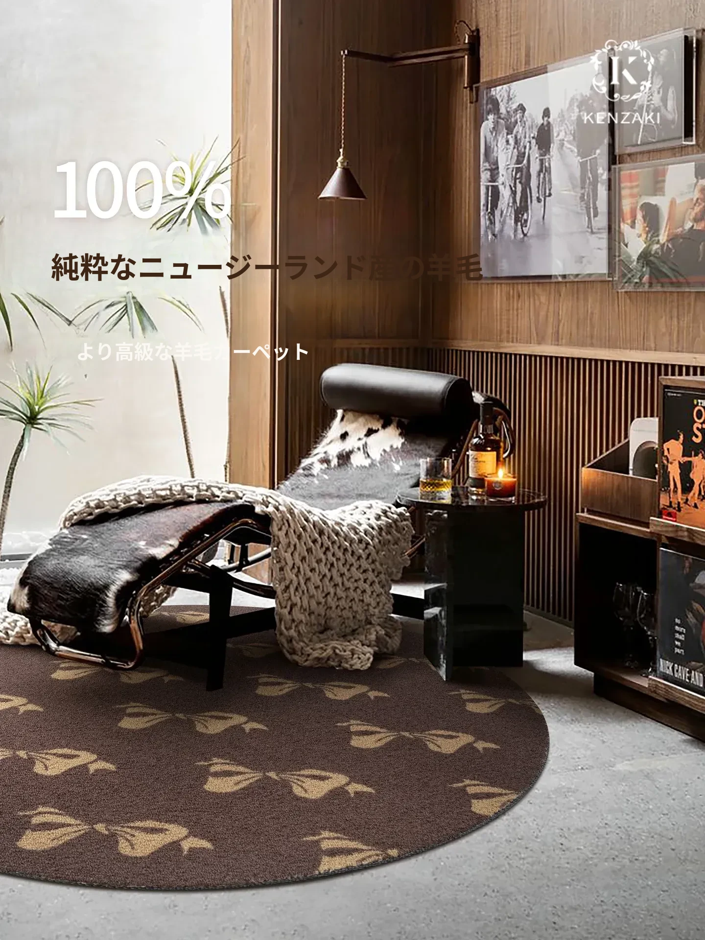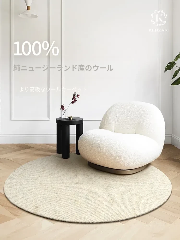 100%純ニュージーランドウール使用!ラグジュアリーな円形カーペット|子供部屋や寝室に最適な高級感溢れるフロアマット|リビングを彩る、贅沢な一枚!
