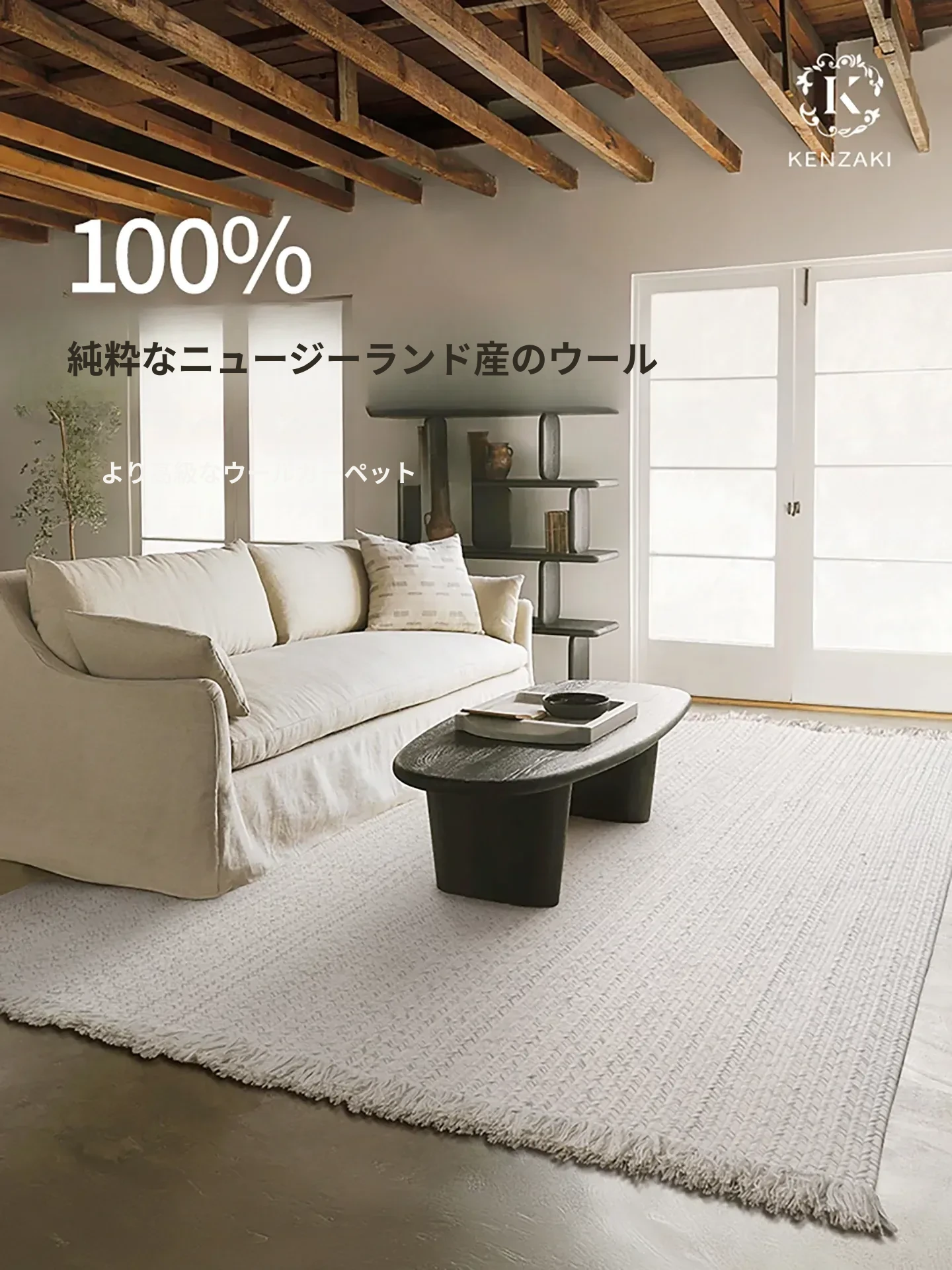 KENZAKI健崎 インポート インド製 手作り 無地 侘び寂びスタイル 寝室用 ソファ リビング 高級ウールラグ