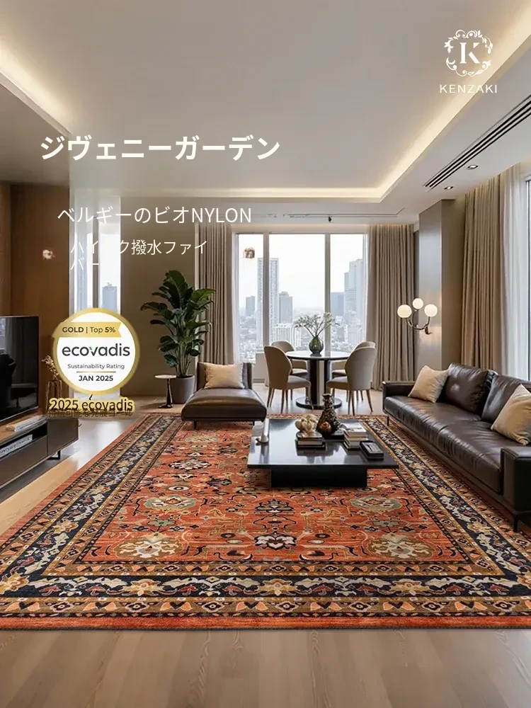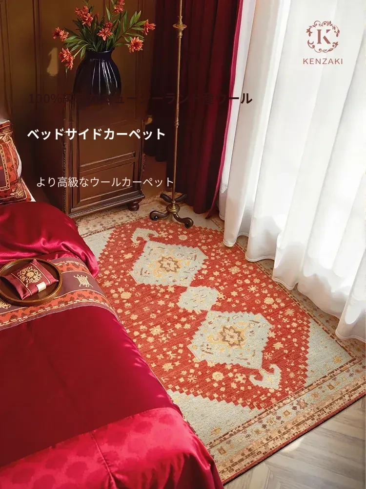ペルシャ絨毯 リビングルーム向けの上質なフレンチスタイル ベッドサイドマット アメリカンソファ用 ヴィンテージレッドのアンティーク風デザインで、優雅さと温もりをお届けします。あなたの空間を特別に演出する逸品です!