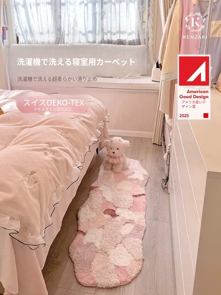 カーペットガールズのベッドサイドマット、子供部屋にぴったりな心温まるモスピンクのロングマット。機械洗い可能で、お手入れも簡単!おしゃれで可愛い空間を演出します。