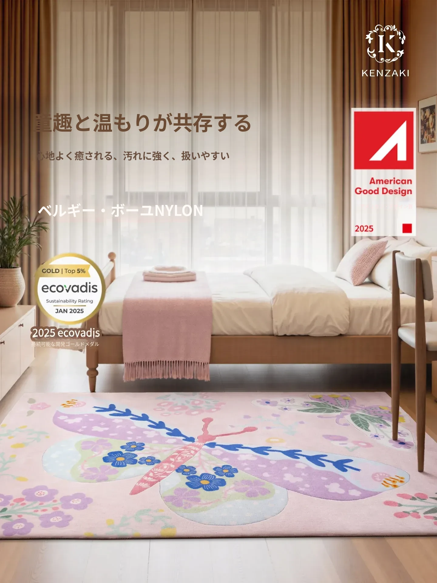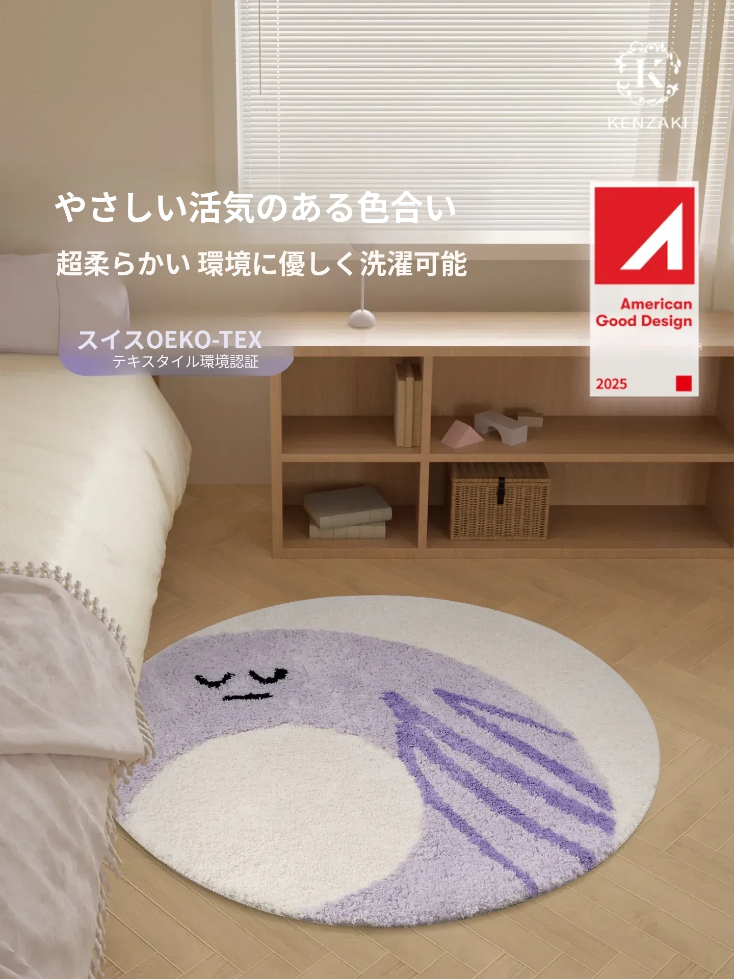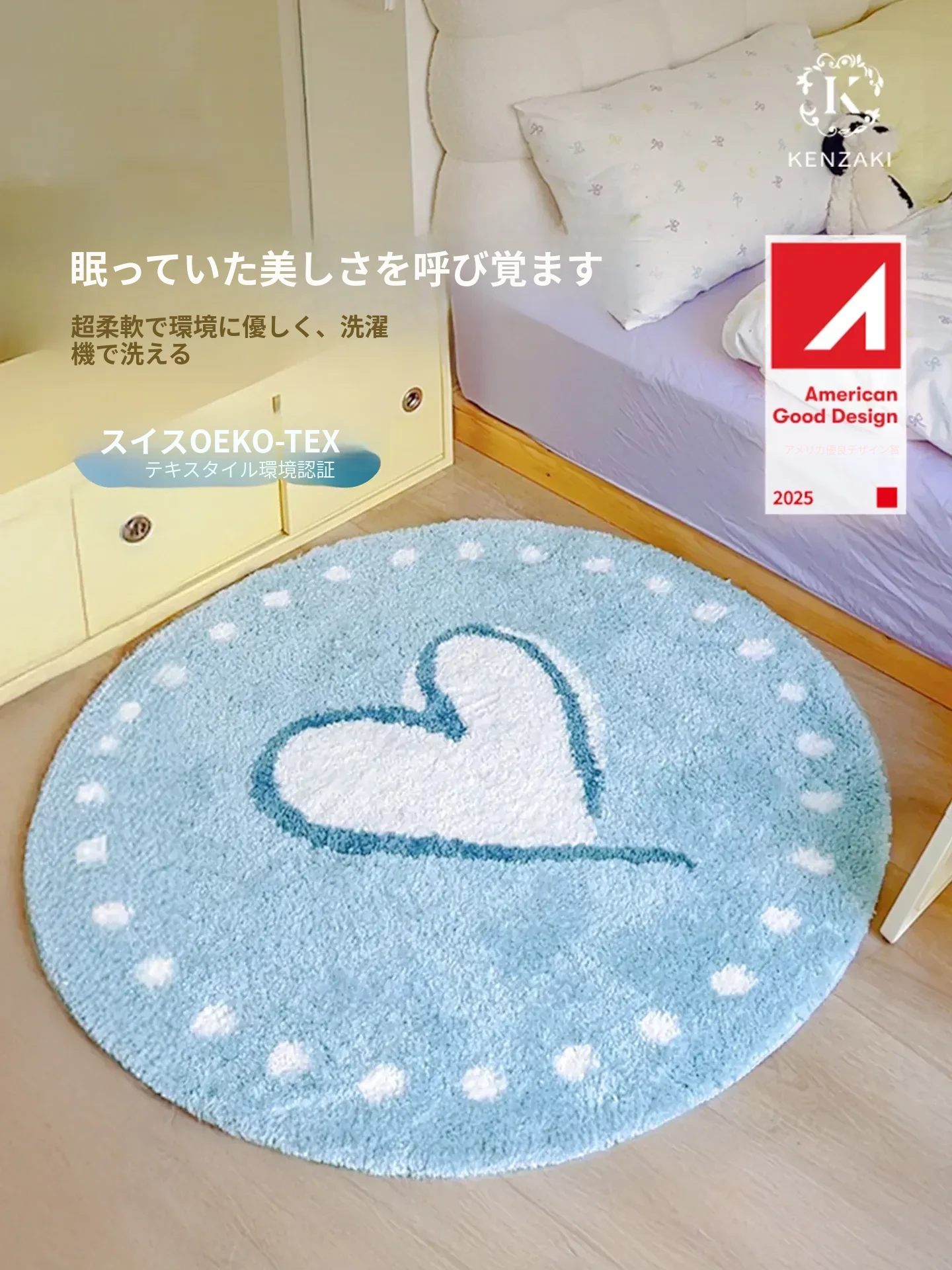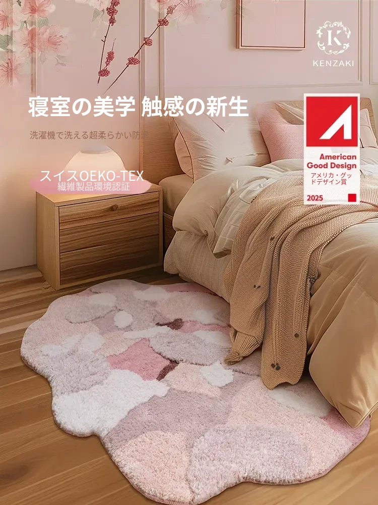 KENZAKI健崎 洗えるカーペット 女の子の寝室やリビングに最適!ベッドサイドやソファ、テーブルの下にもピッタリ。子供たちの遊び場をおしゃれに演出する、ドーパミンを感じるデザイン!