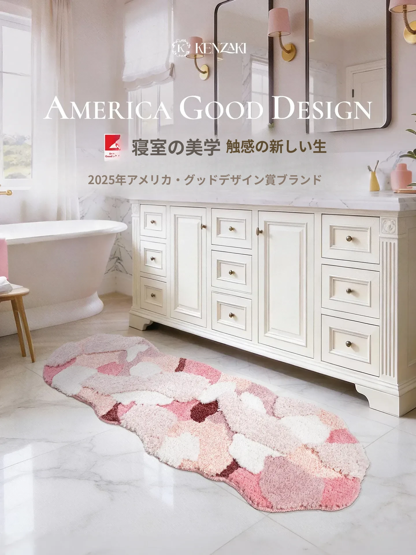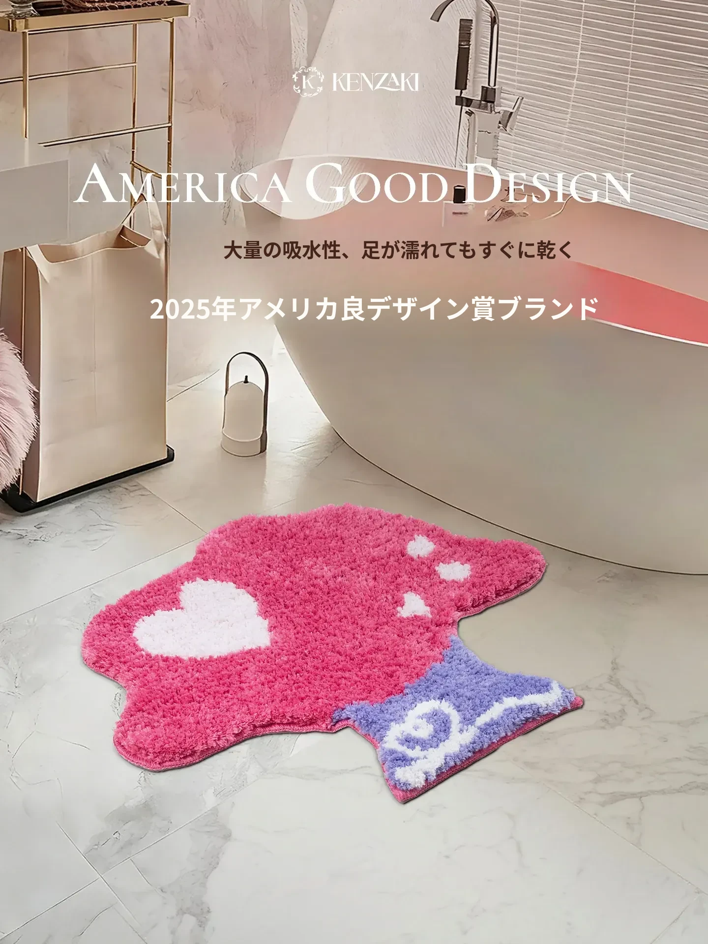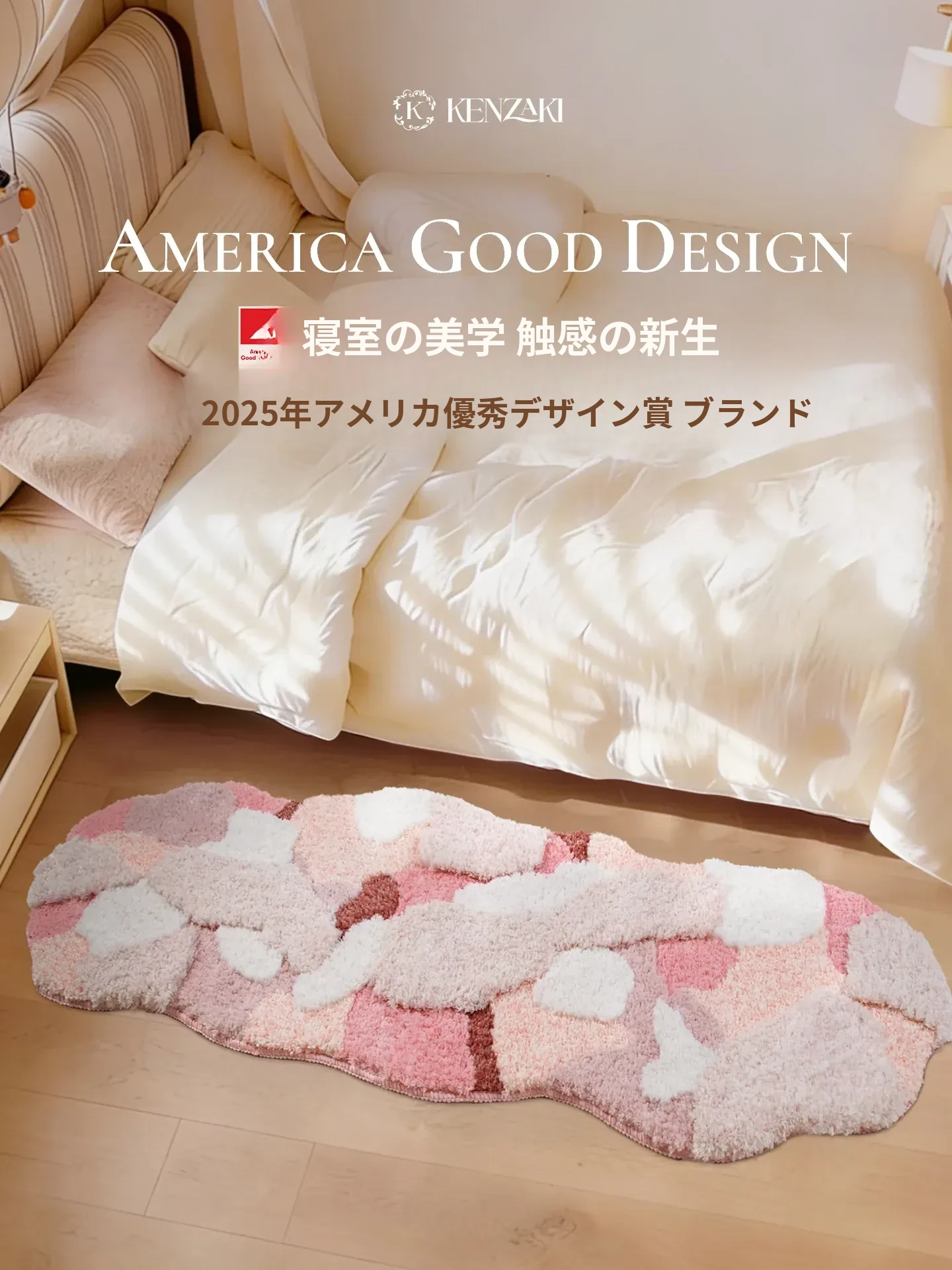 KENZAKI健崎 洗えるカーペット 女の子の寝室やリビングに最適!ベッドサイドやソファ、テーブルの下にもピッタリ。子供たちの遊び場をおしゃれに演出する、ドーパミンを感じるデザイン!