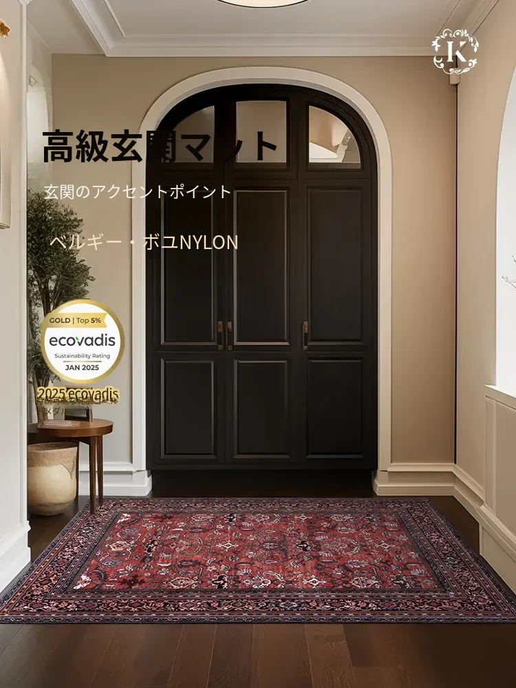 高級エントランスマット・廊下カーペット - フレンチヴィンテージスタイルの洗練されたレッド、汚れに強くてお手入れ簡単!新作登場でおしゃれな空間を演出します。