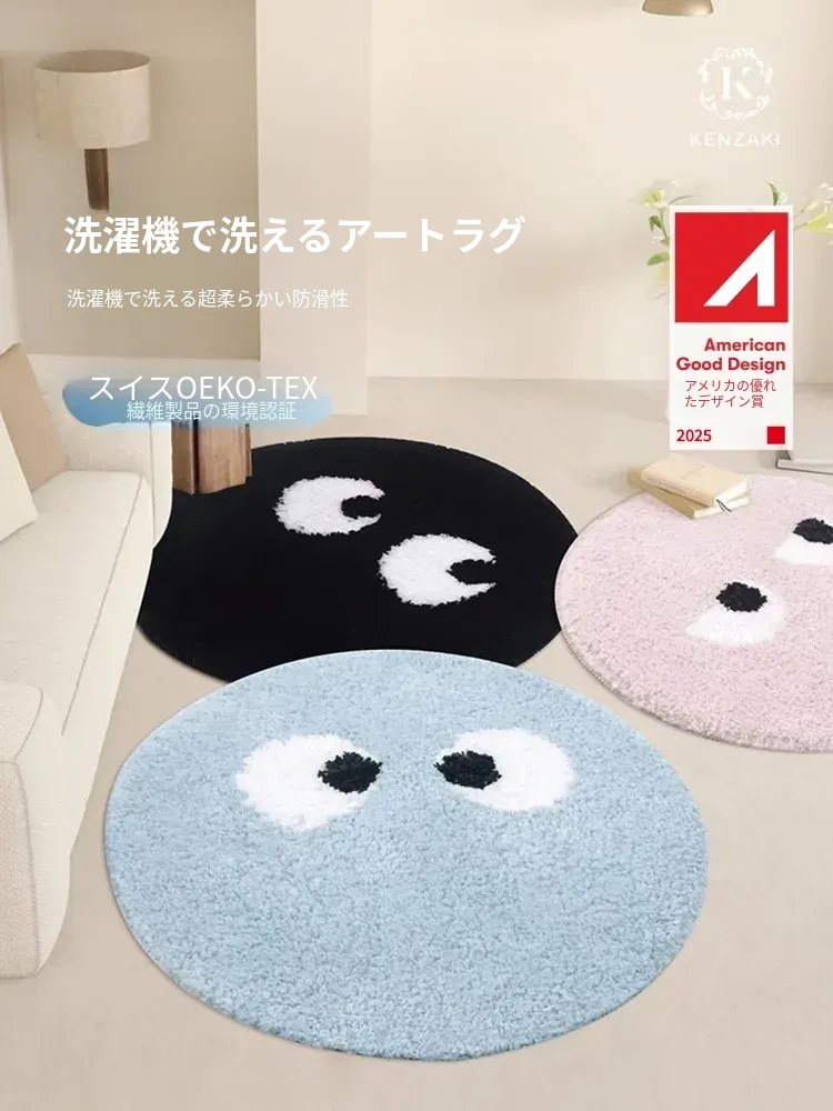 洗える!超柔らかく滑り止め付きの可愛い丸型カーペット - 寝室や子供部屋にぴったりの読書エリアに最適!多バハン効果で心も楽しく!