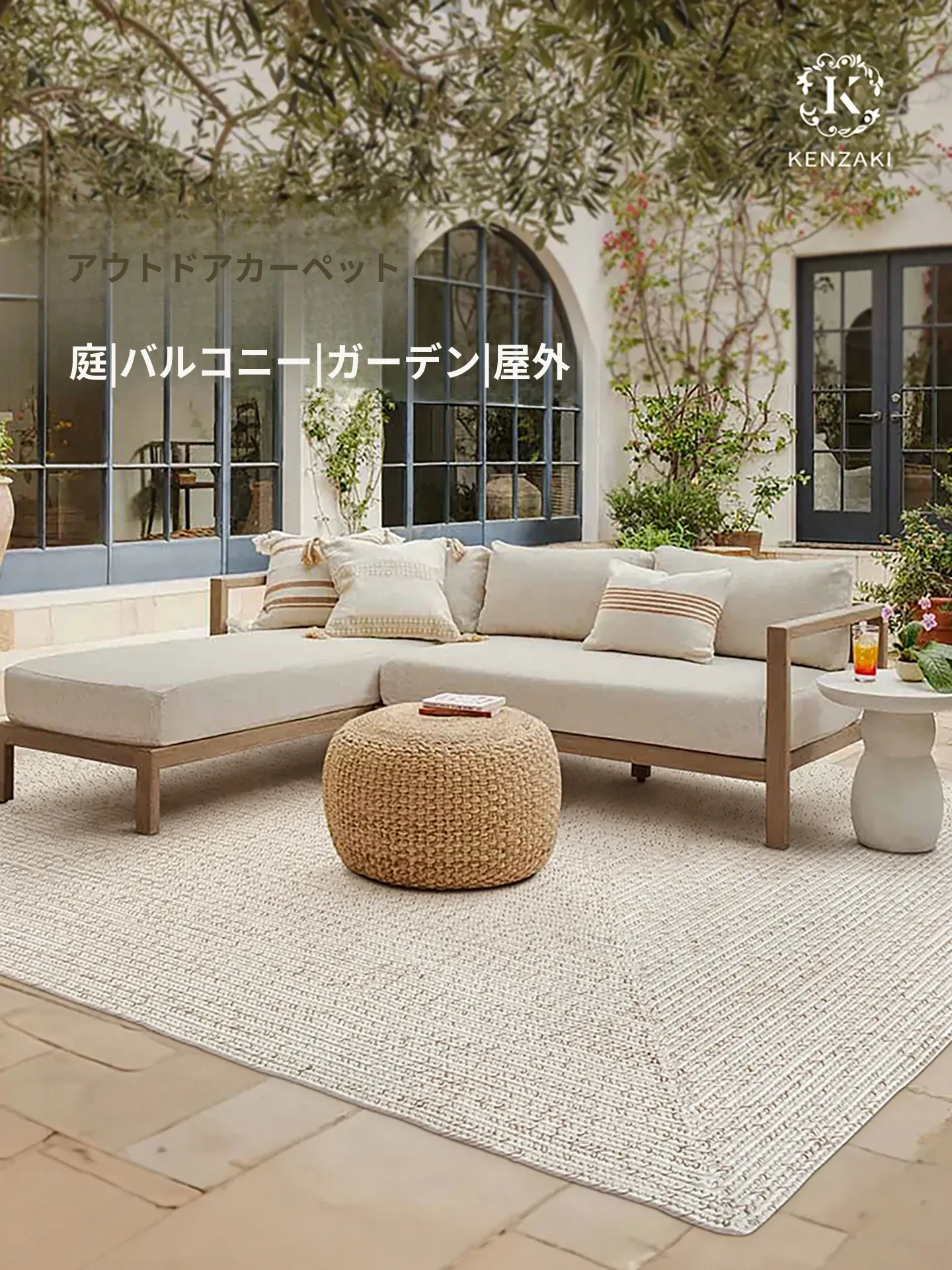 アウトドアカーペット リビングルーム・寝室・ベッドサイドに最適!テラス専用 ダブルサイド織り 日本風シンプルデザイン 無接着剤・無ホルムアルデヒドで安心!