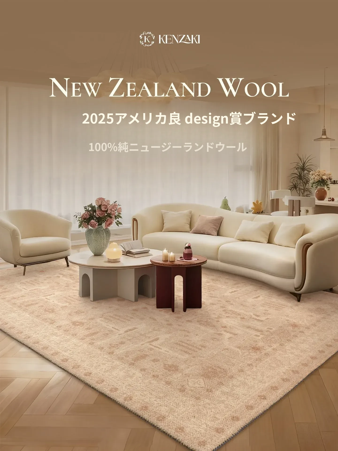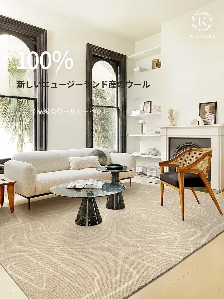 KENZAKI 100%純正ニュージーランドウール使用!高級感溢れる二色織りのソファ・テーブル用ラグ。快適な居心地と洗練されたデザインで、リビングルームを格上げします。