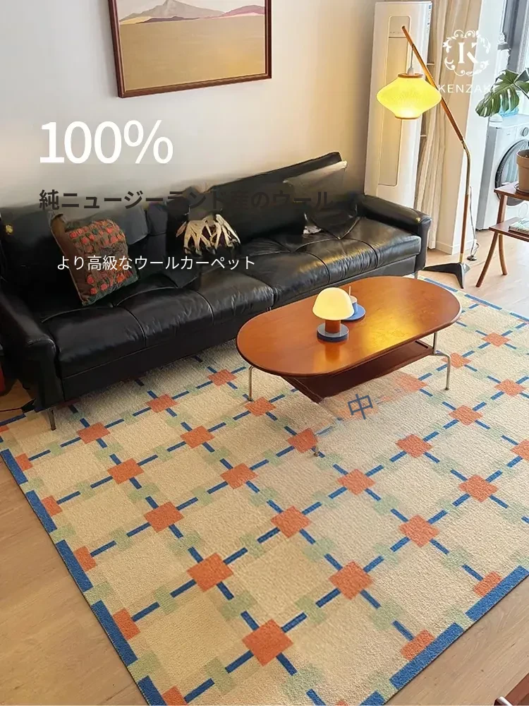 100%ニュージーランド産ウールカーペット|リビングにぴったりな中古風の軽やかなラグ|フレンチスタイルの高級寝室やベッドサイドに最適なレトロデザイン|心を満たす多幸感を演出!