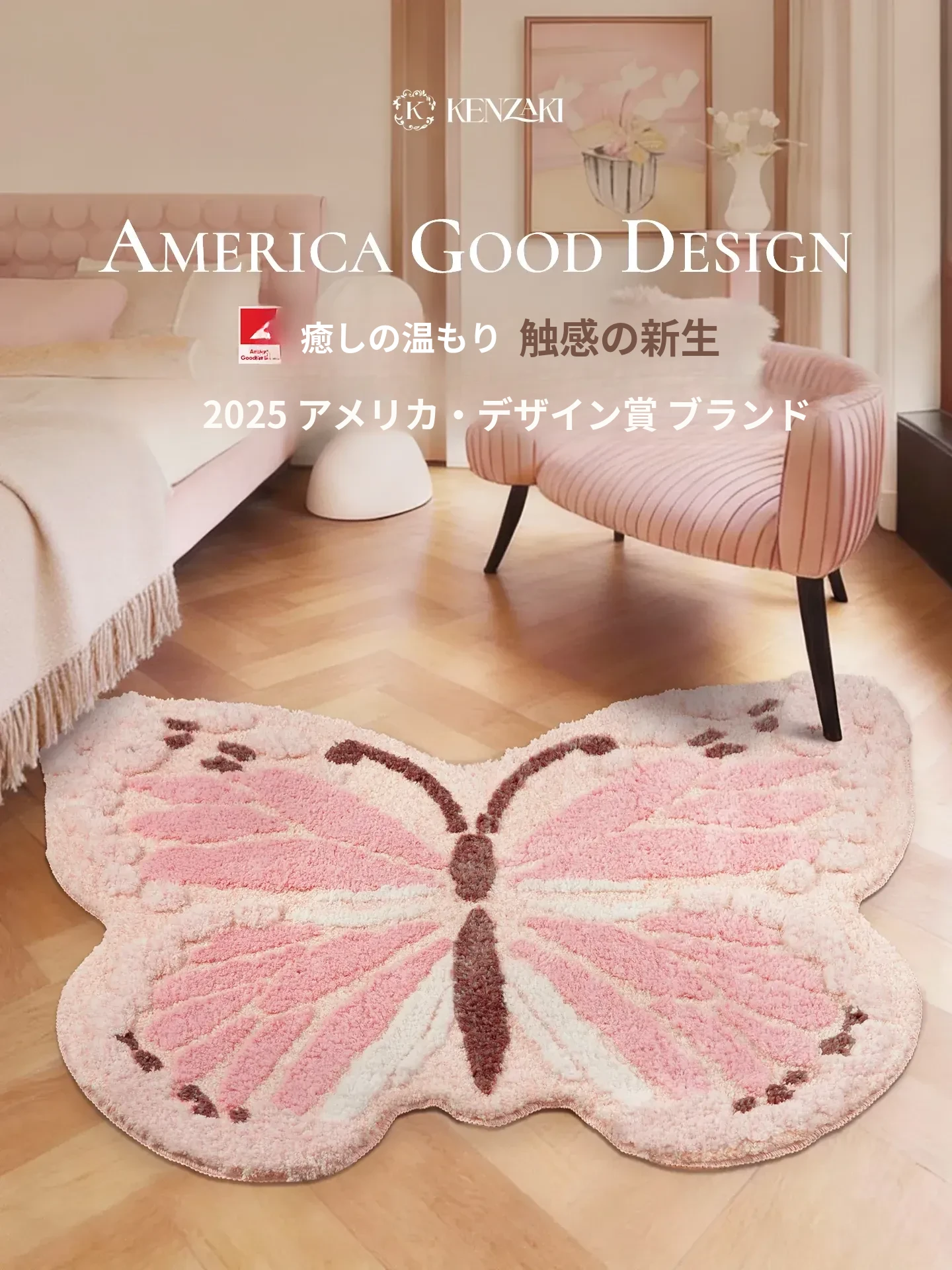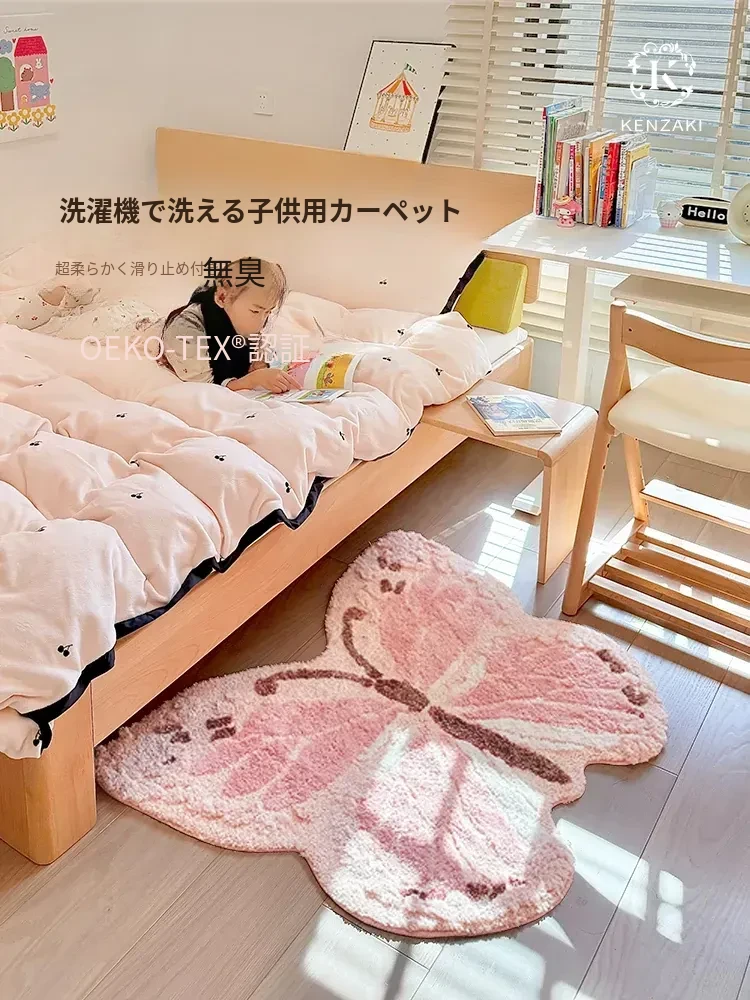 カーペットガールズ 寝室用 ベッドサイドマット 多バイン ドーパミンピンク バタフライ キッズ 可愛い ラグジュアリー 不規則 デザイン 洗濯機対応 夢のような空間を演出!