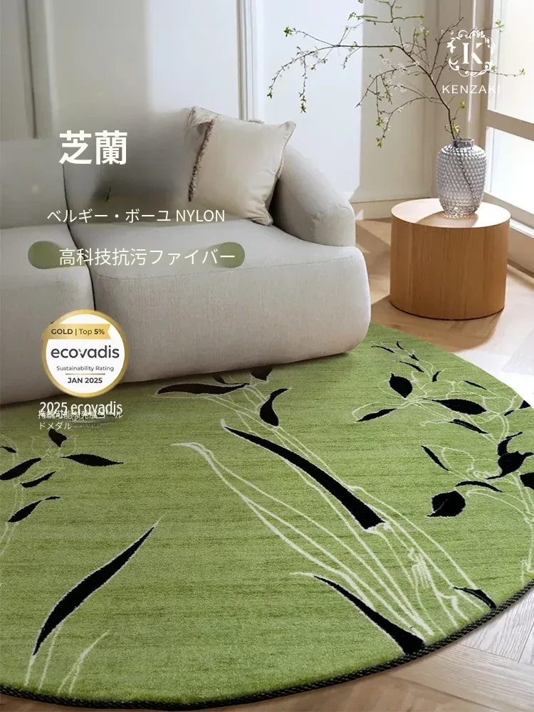 ラグマット リビング・ベッドルーム用 丸型 ヴィンテージ風 ソファマット 軽やかなラグ フレンチスタイル 防音・耐汚れ グリーン色 おしゃれで上品な空間を演出!