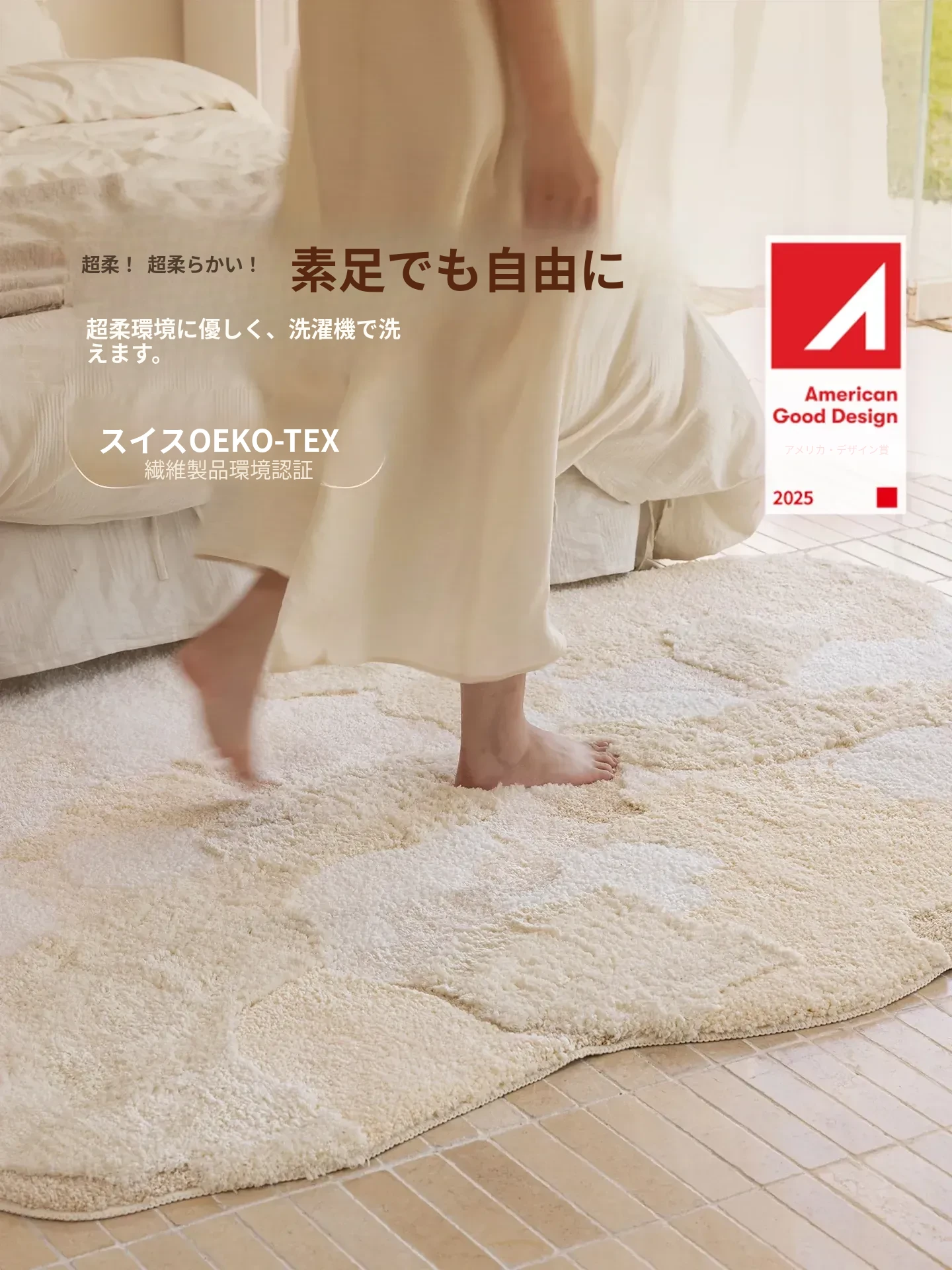 おしゃれなインテリアを引き立てるベッドサイドカーペット!高級感溢れるクリームカラー、防滑設計で安心。子供部屋にもぴったり、洗濯機で丸洗い可能な異形マット。快適さとスタイルを両立させた一品です!