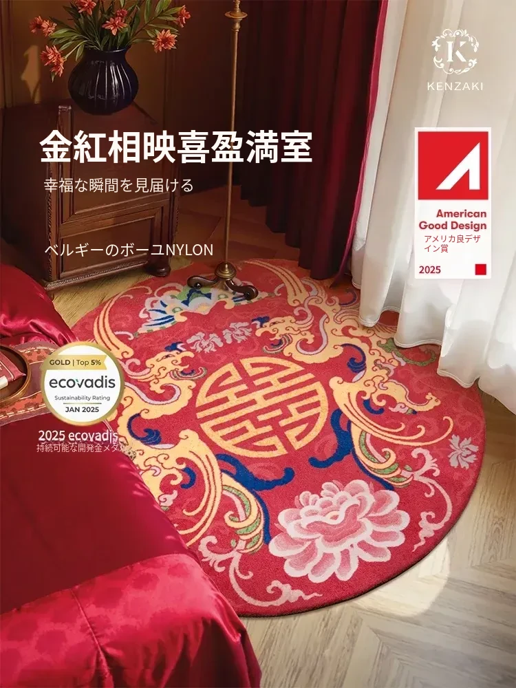 新婚祝いにぴったり!豪華で洗練された円形の赤いカーペット - 結婚式の雰囲気を演出するおしゃれな寝室マット。お手入れも簡単で、喜び溢れる新生活をサポートします!
