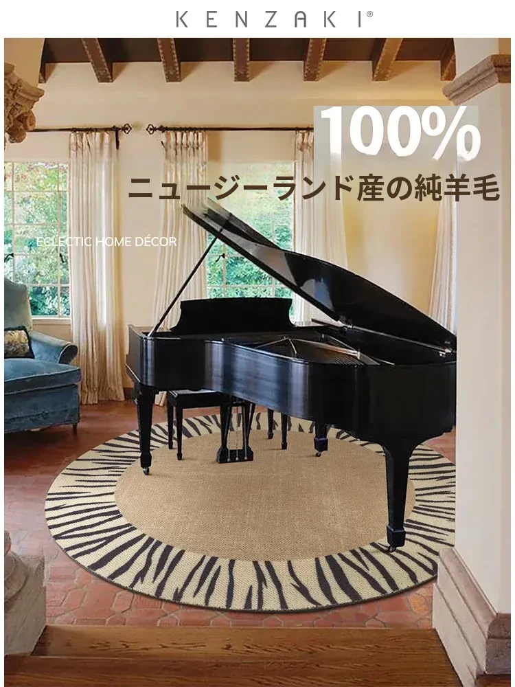 100%ニュージーランドウール製ピアノラグ - 音を吸収し、振動を軽減するラウンドデザイン。リビングルームにぴったりなラグジュアリーな高級感を演出するピアノ用クッションマット!