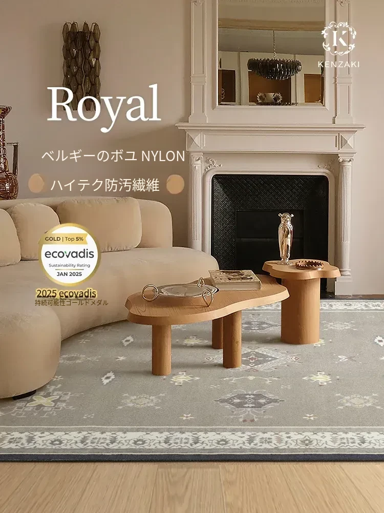 リビング・ソファ・ベッドサイドに最適!アメリカンヴィンテージスタイルの耐汚れラグ。軽やかな高級感とフランス風のレトロな魅力を兼ね備えたデザインで、書斎にもぴったり。あなたの空間をワンランクアップさせる一枚!