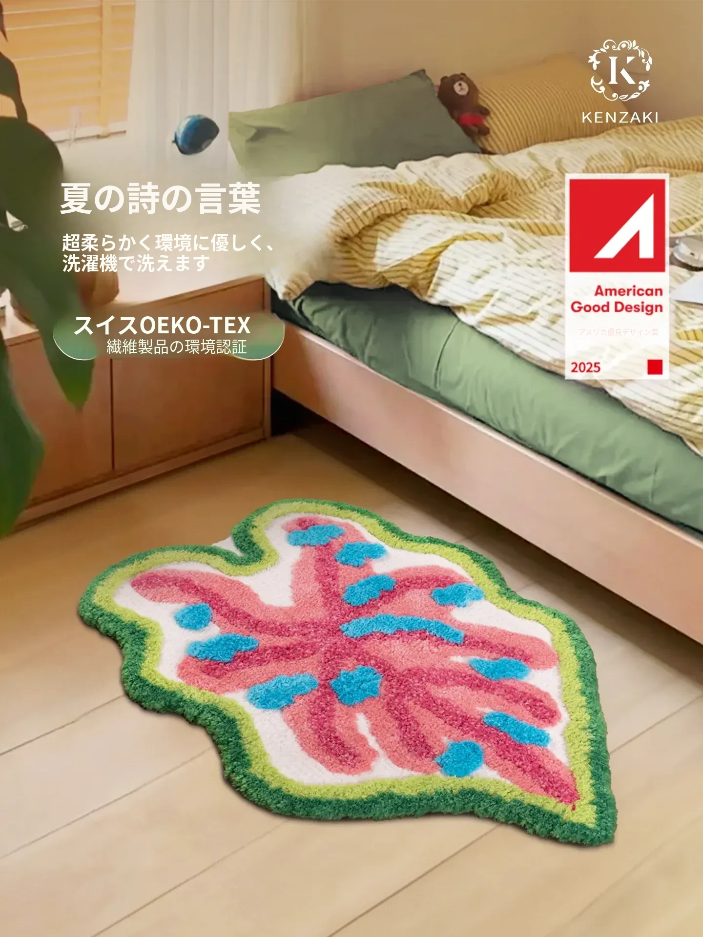子供用インテリアラグ|おしゃれなベッドサイドカーペット|男の子・女の子のお部屋にぴったり|多様な形状とカラフルなドーパミンリーフデザイン|洗濯機で洗えるのでお手入れ簡単!