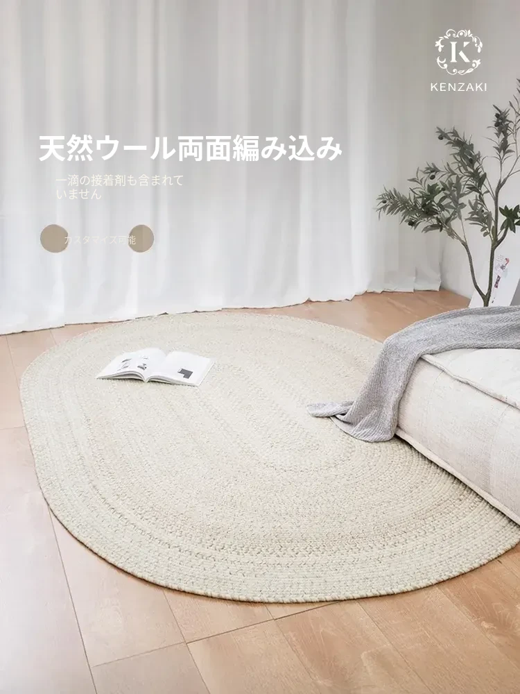 KENZAKI 天然ウール シンプルな侘び寂びスタイルの無地ラグ - 接着剤不使用のソファやリビングに最適な織りタイプのカーペットで、心地よい温もりを提供します。