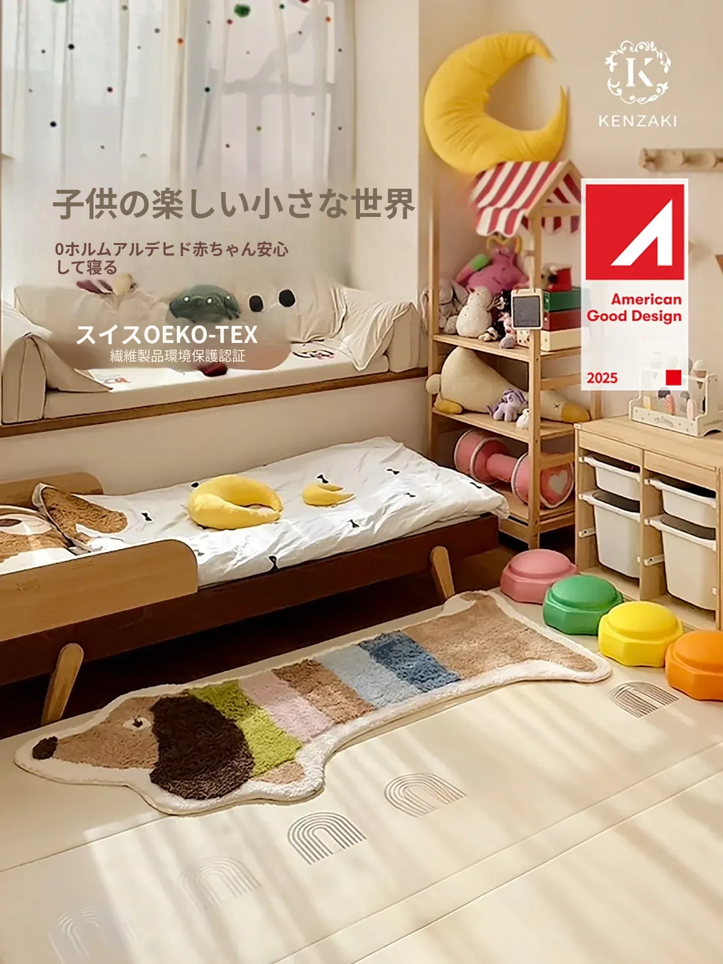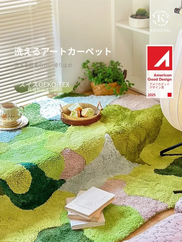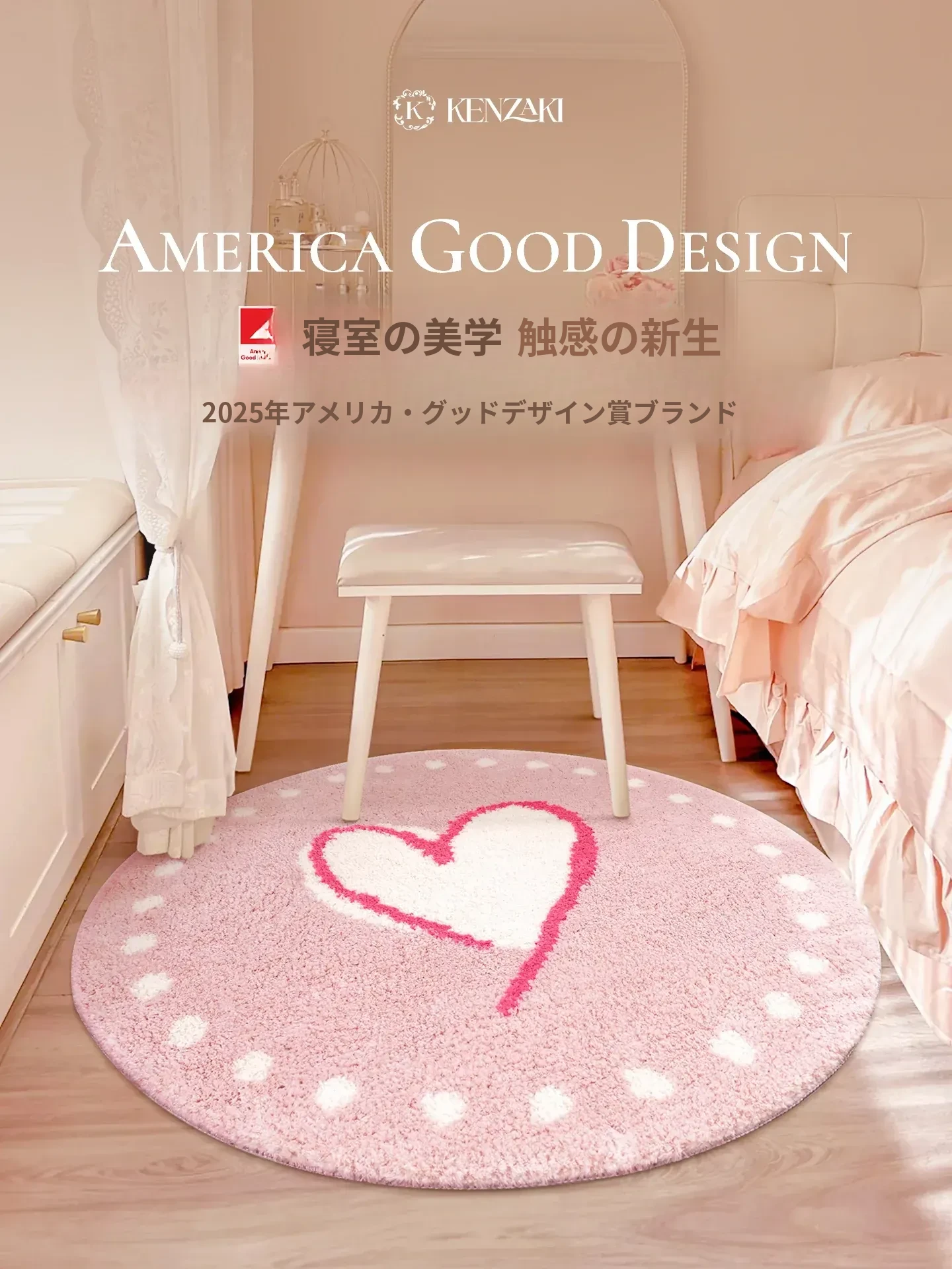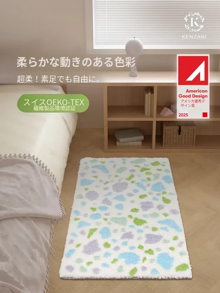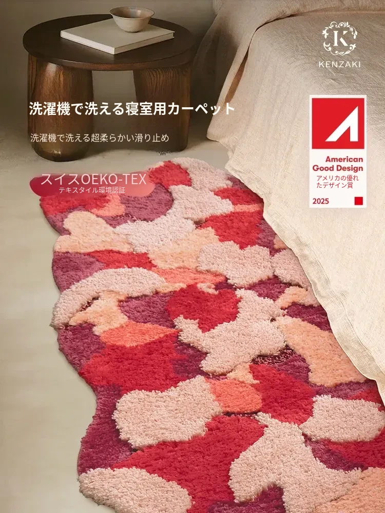KENZAKI健崎 洗えるカーペット 女の子の寝室にぴったり!ベッドサイドマットや窓辺、リビング用に最適。滑り止め付きでシンプルでありながらアート感覚溢れるデザイン。快適な空間を演出します!