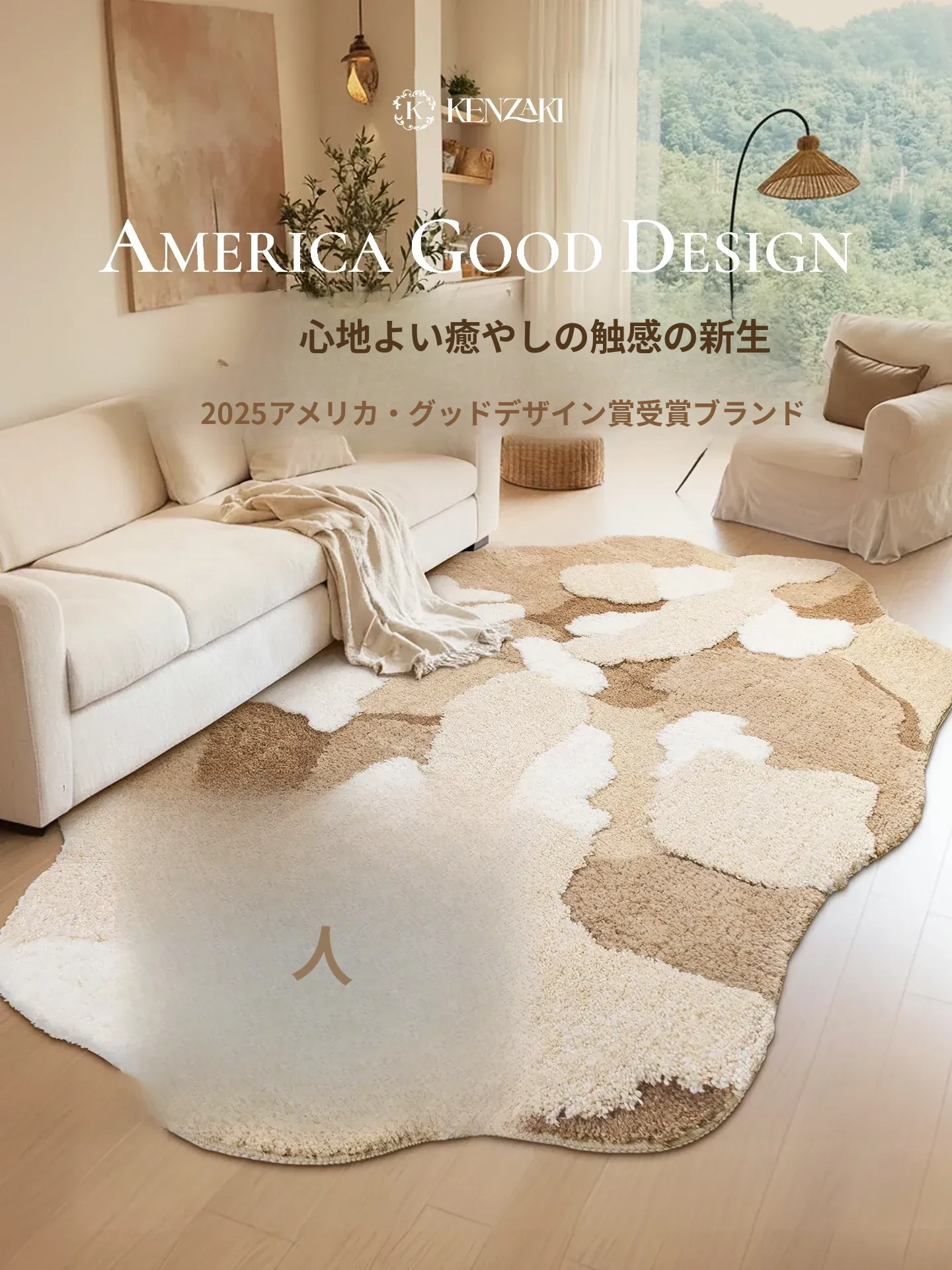 KENZAKI健崎 新作2025年 ふんわりラグ カジュアルなリビングやベッドサイドに最適 フランス風ソファにぴったりの上質な軽奢スタイルマット