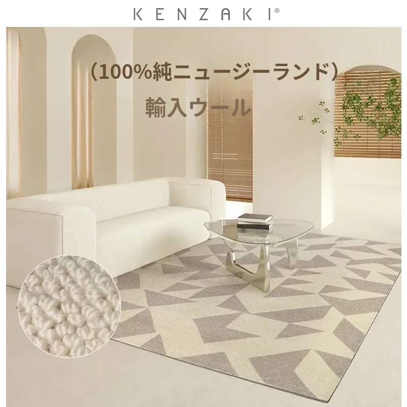 KENZAKI健崎 100%純正ニュージーランドウールラグ|リビング・寝室に最適な高級感あふれる円形カーペットで、心地よい温もりをお届けします!