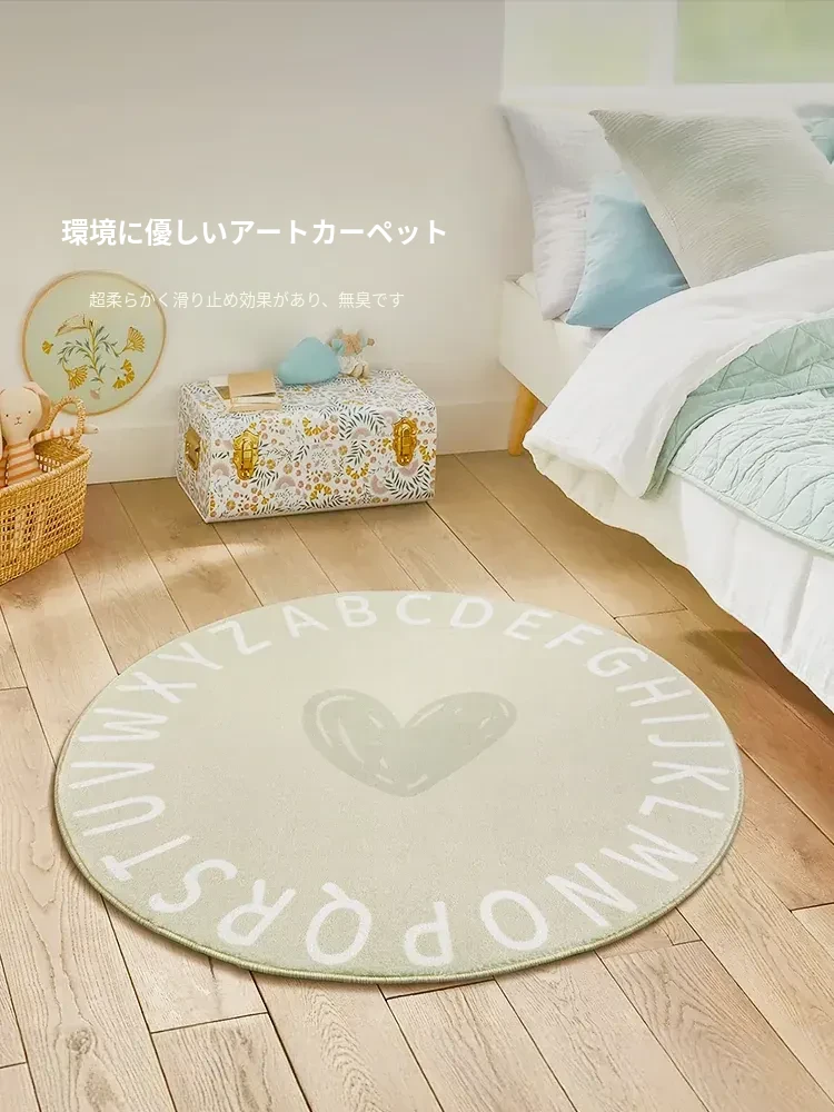 【在庫一掃セール】子供部屋にぴったり!女の子のためのかわいい円形ラグ、ベッドサイドマットとしても◎ 超柔らかくて環境に優しいデザインで、快適な空間を演出します。